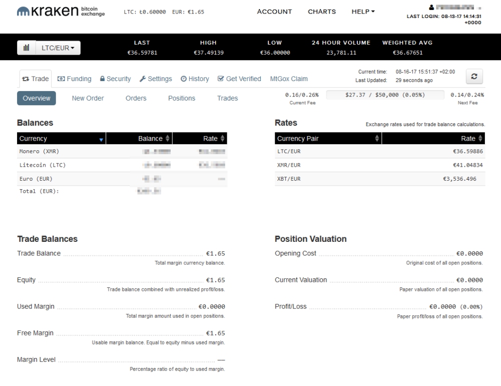 Takto vyzerá obchodovanie na burze www.kraken.com