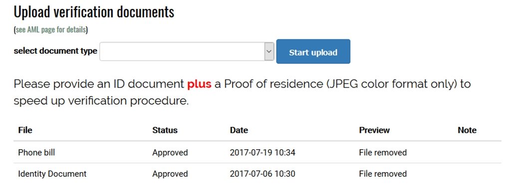 Na dotáciu burzového účtu FIAT menou potrebujete vyšší stupeň verfikácie poslaním klasických dokladov
