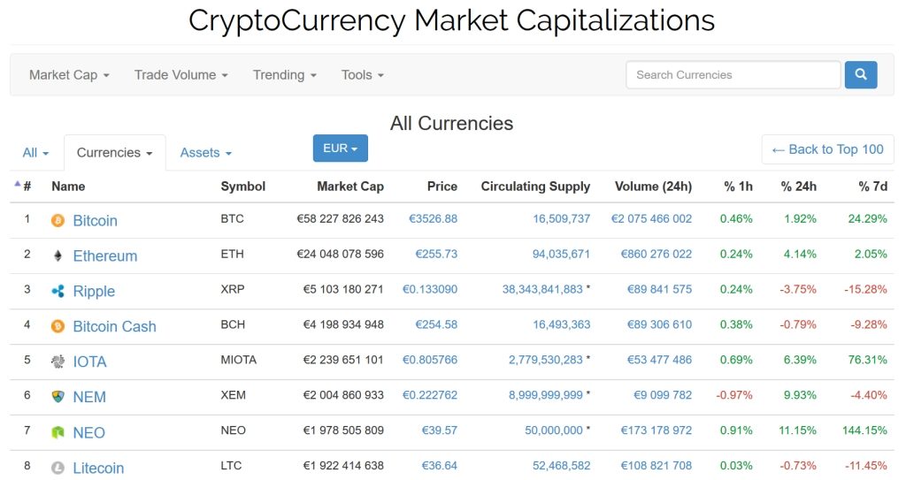 Zoznam ôsmich najpoužívanejších kryptomien (s najväčším trhovým podielom)