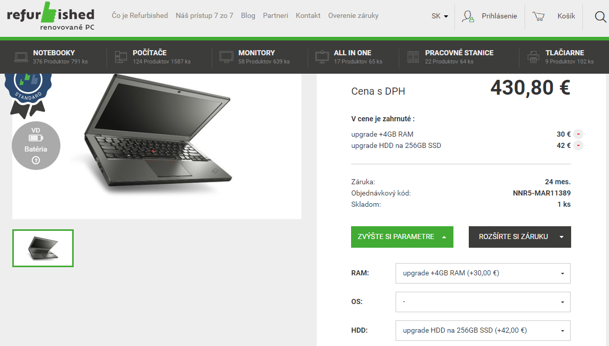 Notebooky si môžete objednať priamo cez www.refurbished.sk alebo môžete využiť sieť viac ako 140 partnerov po celom Slovensku. Internetový obchod je prehľadný a poskytuje detailné informácie o konfigurácii a stave notebooku i batérie. V prípade najlacnejších modelov v triede Economy obyčajne nájdete aj fotografie predávaných produktov. Zistíte, ako presne vyzerajú prípadné škrabance. Obyčajne sú to zariadenia s nižším výkonom, ale stále vhodné ako domáca kancelária, pre deti alebo na sledovanie filmov. Môžete si tiež vybrať aj hardvérovo veľmi vybavený notebook, ktorý je však z hľadiska opotrebenia zaradený do skupiny Economy a teda na jeho cene výrazne ušetríte.