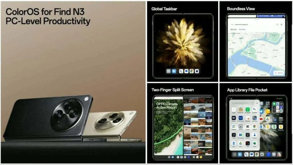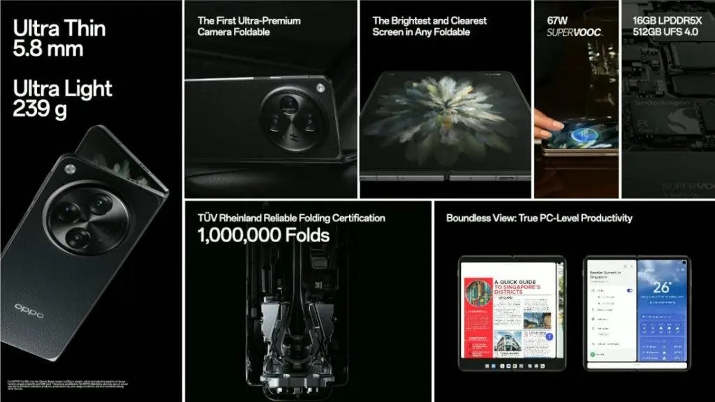 Oppo Find N3 prináša aj celkom nový spôsob umiestnenia troch okien na obrazovku súčasne, a to vo vertikálnej aj horizontálnej orientácii. Táto funkcia je označovaná ako „15-palcová virtuálna obrazovka“. Ďalšie technické parametre nájdete na tomto odkaze
