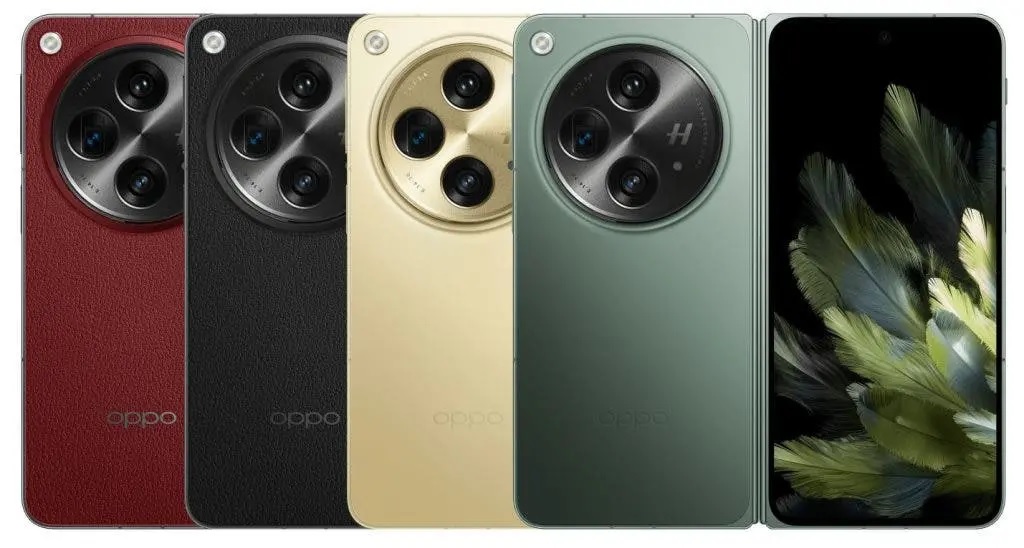 Oppo Find N3 bude k dispozícii v štyroch rôznych farbách a dvoch povrchových úpravách. Varianty Black and Red sú pokryté panelom z vegánskej kože, zatiaľ čo modely Green a Gold majú zadnú stenu z matného skla.