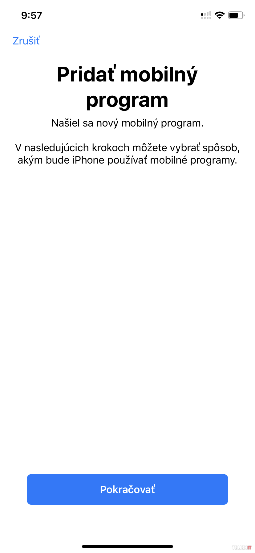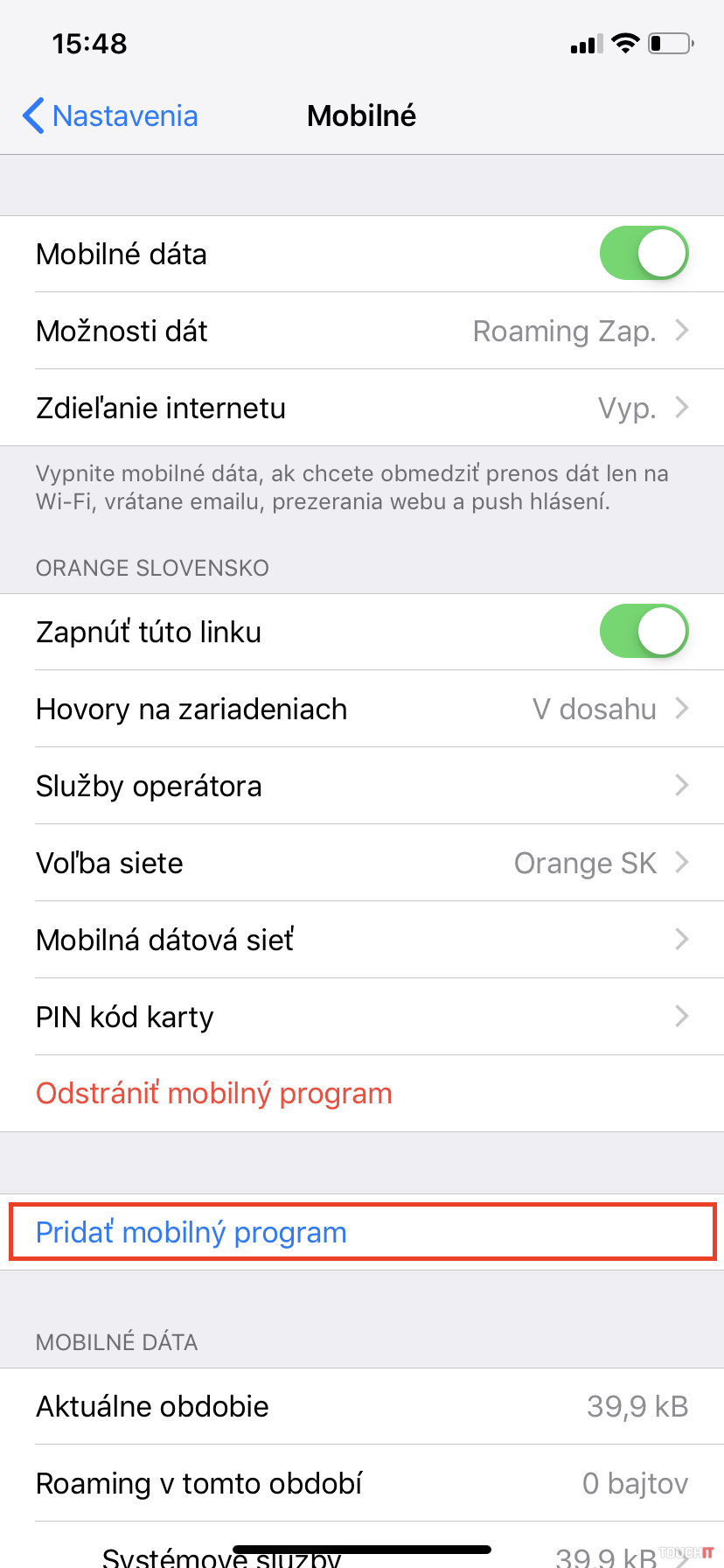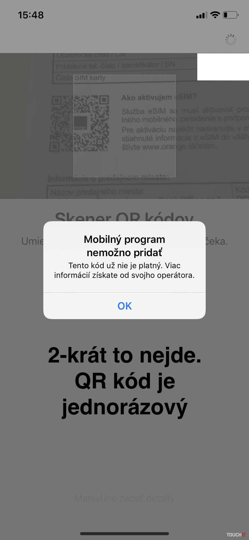 „Počas procesu pridávania vám vyskočí upozornenie v znení – „Neschválený mobilný program. Tento mobilný program nebol schválený pre iPhone. Môže to ovplyvniť hovory a dáta, odkazovač a výdrž batérie.“ Netreba sa toho báť, je to iba opatrenie operátora, nakoľko eSIM nie je pre smartfóny oficiálne podporovaná služba, zatiaľ.“