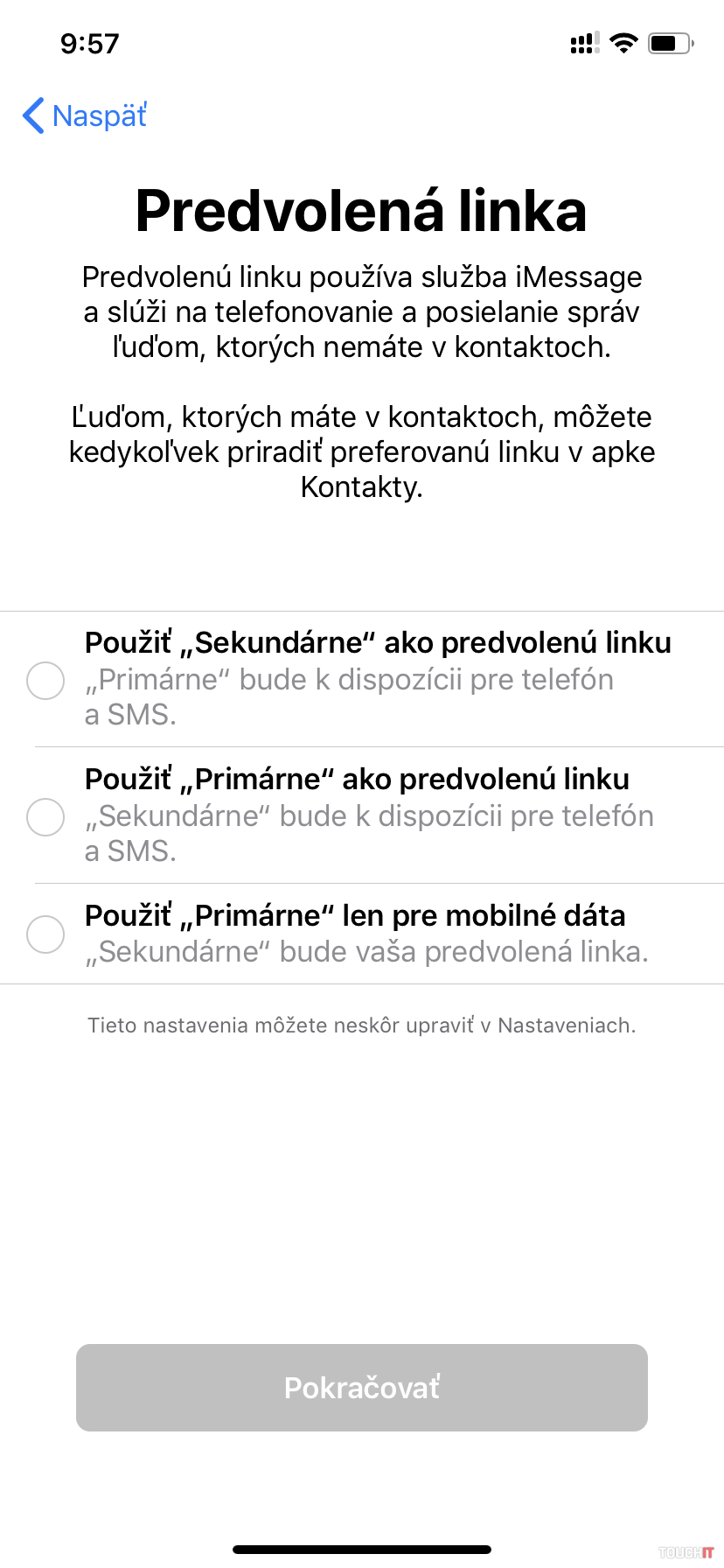 Overovali sme aj správanie sa dvojice eSIM + SIM. Funguje to tak, že ak telefonujete z eSIM čísla (akýkoľvek aktívny hovor), tak to druhé sa volajúcemu, ktorý sa vám snaží dovolať v rovnakom čase, javí ako nedostupné. To platí aj v opačnom prípade. Okrem tohoto prípadu sú obe karty sú vždy aktívne a dostupné. Takže pokiaľ vám nezavolajú dve osoby v rovnakom čase na dve používané čísla, tak sa nič nedeje. Tento scenár je menej pravdepodobný. Výhodou je, že v nastaveniach si môžete zapnúť prepínanie mobilných dát. Určite viete, že keď telefonujete, tak dáta nie sú dostupné. V tomto prípade to funguje tak, že ak telefonujete z jedného čísla, tak počas hovoru môžete využívať mobilné dáta toho druhého. Šikovné! Ďalšie nastavenia a možnosti (iPhone XR) Po pridaní eSIM treba prejsť základnými nastaveniami a rozdelením SIM kariet. V jednotlivých „oknách“ sa vás telefón pýta, ktorú kartu a na aké účely budete používať, ktorú budete preferovať a pod. Tu sa nastavuje aj natívna funkčnosť SIM kariet – primárna, sekundárna alebo iba na dáta. Tieto nastavenia sa dajú neskôr zmeniť.