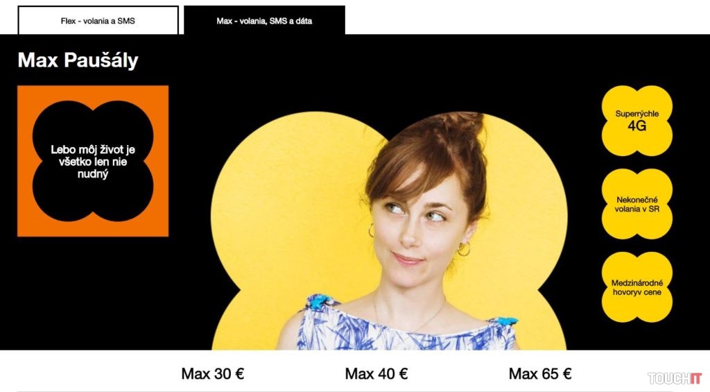 Paušály Max smeruje Orange na používateľov, pre ktorých sú dáta dôležité. Paušály obsahujú neobmedzenú komunikáciu v rámci Slovenska a možnosť zdieľať svoje dáta s ďalším zariadením, napríklad s tabletom.