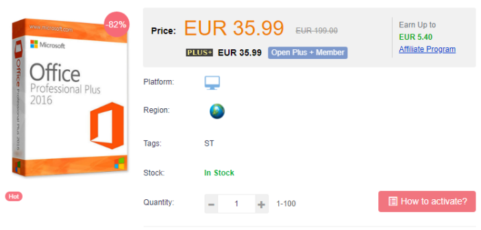 2. Office2016 Professional Plus Key: výpredajová cena po zadaní kódu TC18 – 29.51 €