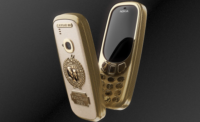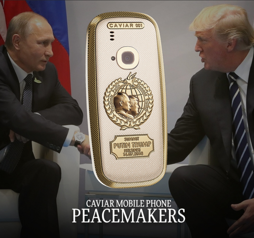 O pár dní sa bude v Helsinkách konať historický summit Trump – Putin. Ruská spoločnosť Caviar pripravila pre túto príležitosť opäť špeciálnu edíciu telefónu. Tentokrát je ním Nokia 3310.Telefón je vyrobený z titánu s 24-karátovým zlatým lemom a ornamentom s vyobrazenými prezidentmi – Vladimírom Putinom a Donaldom Trumpom, ktorí pozerajú rovnakým smerom. Je zrejmé, že toto vyobrazenie nesie aj významnú politickú symboliku, ktorá odkazuje na dôležitosť tohto stretnutia.Zlato, ktoré je nanášané na titánový základ technológiou PVD zvyšuje odolnosť pred vznikom korózie. Zlatá vrstva dodáva telefónu aj honosný vzhľad a pokrýva celé zariadenie, vrátane navigačných tlačidiel a klávesnice.