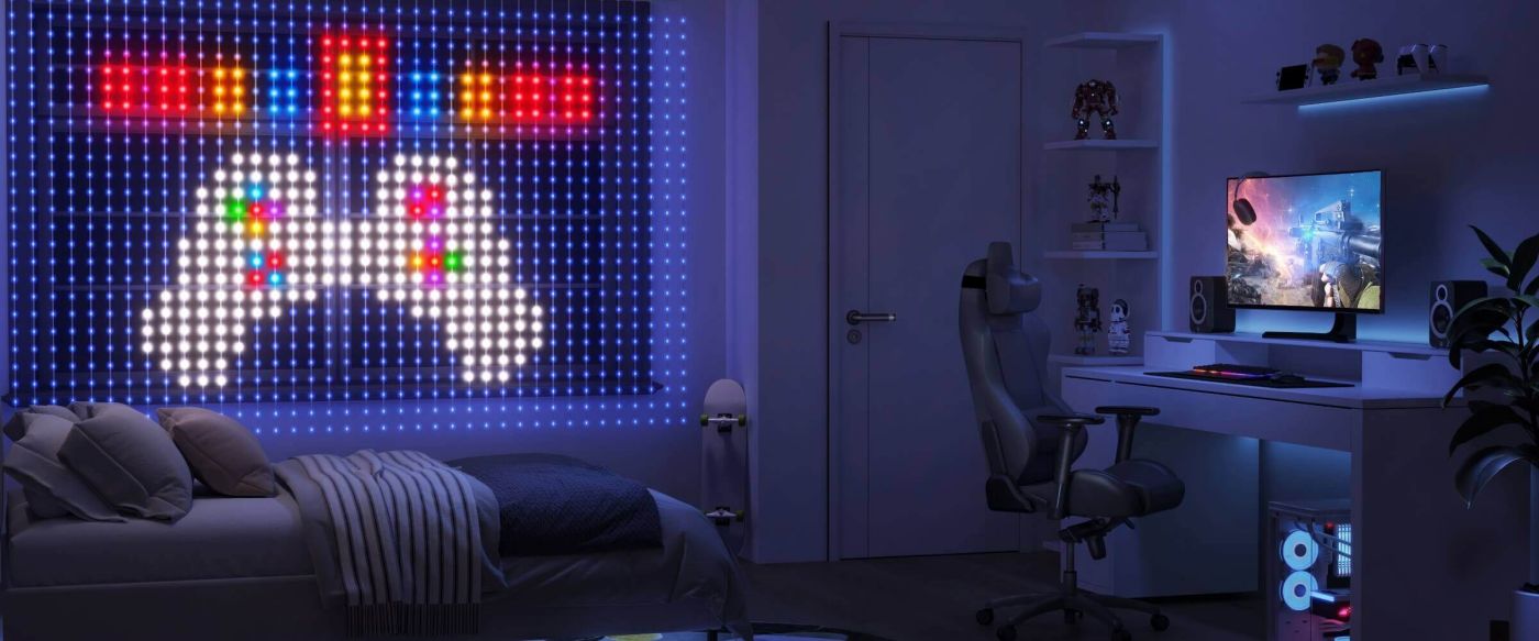 Tento typ osvetlenia odporúčam napríklad do spálne alebo do detskej izby, no využijete ho aj v iných miestnostiach. Slúži ako svetelná záclona zložená z viacerých LED svetiel. Ovládať sa dá opäť pomocou aplikácie Govee Home, kde jej môžete nastaviť niektorý z predvolených režimov osvetlenia napríklad aj s tematikou Vianoc, Valentína či Halloweenu. Nechýba ale ani podpora Google Asistenta či Alexa. Na samotnom osvetlení však dokážete meniť základné režimy vďaka vstavanému ovládaču. Niektoré režimy osvetlenia zároveň imitujú motívy prírody ako západ slnka, padanie jesenných listov alebo jasnú dúhu. Využiť môžete aj dynamický DYI režim, keď si vzor osvetlenia vytvoríte sami.