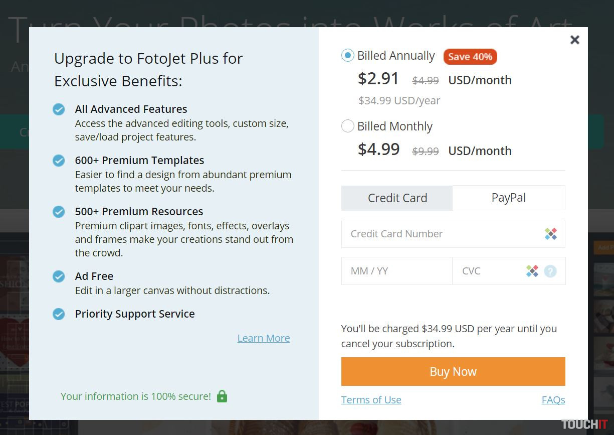 FotoJet je dostupný zadarmo. Pre prístup ku všetkým funkciám je však potrebné predplatnéZdroj: FotoJet.com