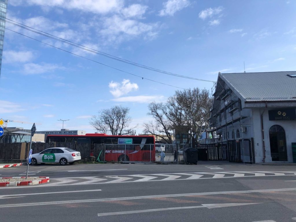 - Testovacie miesto sa nachádza v červenom autobuse v exteriéri na parkovisku s priamym výhľadom na autobusovú stanicu.
