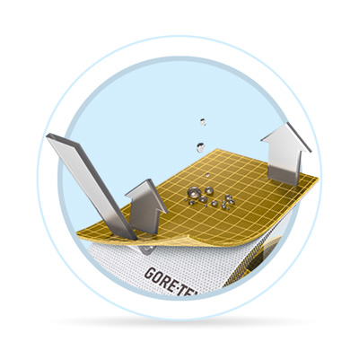 Hovoríme jej aj vrchná. Tretia vrstva má za úlohu chrániť pred dažďom, snehom a vetrom. Zároveň však musí stále odvádzať telesnú vlhkosť zo spodných vrstiev preč a v ideálnom prípade byť aj oderuvzdorná. Na turistiku odporúčame zbaliť si so sebou ľahšiu variantu tejto vrstvy aj počas teplých dní a v lete (tenkú vodoodolnú / vetruodolnú bundu).  Medzi najznámejšie materiály tejto kategórie patria Gore-Tex a eVent, no ich počet je rovnako široký ako pri iných materiáloch a poskytujú rôzne vlastnosti a úrovne ochrany. Funkčné tkaniny typu „hard-shell sú založené na princípe membrány, ktorá povolí prepúšťanie molekúl vodnej pary smerom von a pritom neprepustí molekuly vody v kvapalnom skupenstve naspäť. Molekula vodnej pary je totiž menšia než kvapôčky vody a práve na tomto princípe bola táto membrána navrhnutá.