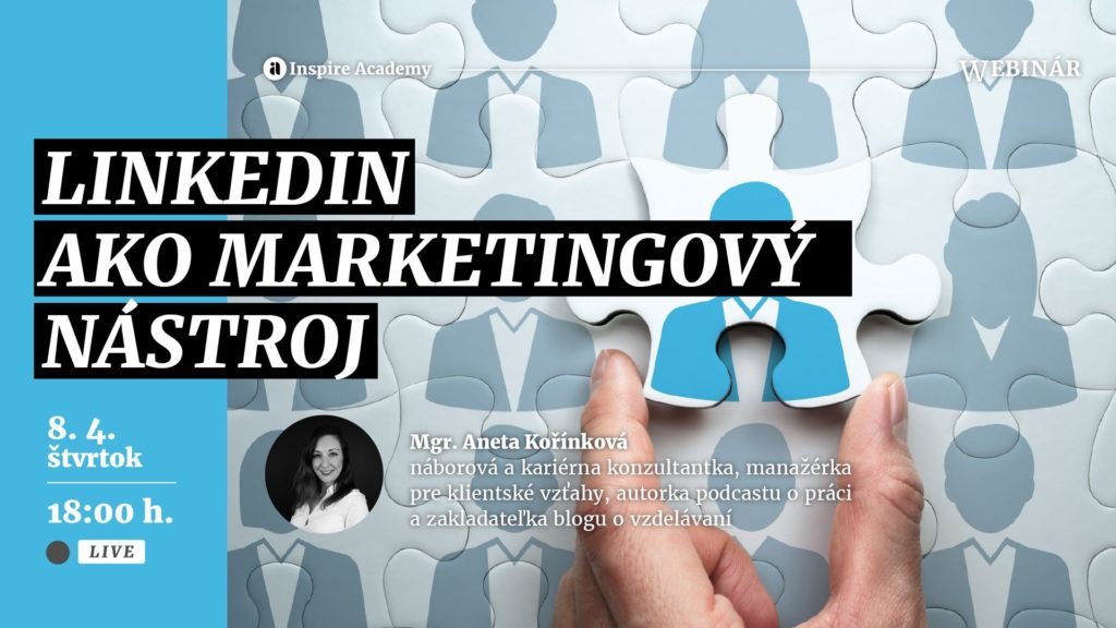 Nielen sociálna sieť pre dospelých milovníkov nažehlených oblekov, ale aj efektívny marketingový nástroj pre zamestnancov, freelancerov, firmy aj uchádzačov o zamestnanie a pôsobivá databáza pre HR zároveň. To je sieť LinkedIn, o ktorej výhodách a princípoch bude vo štvrtok 8. apríla rozprávať náborová a kariérna konzultantka, Aneta Kořínková.