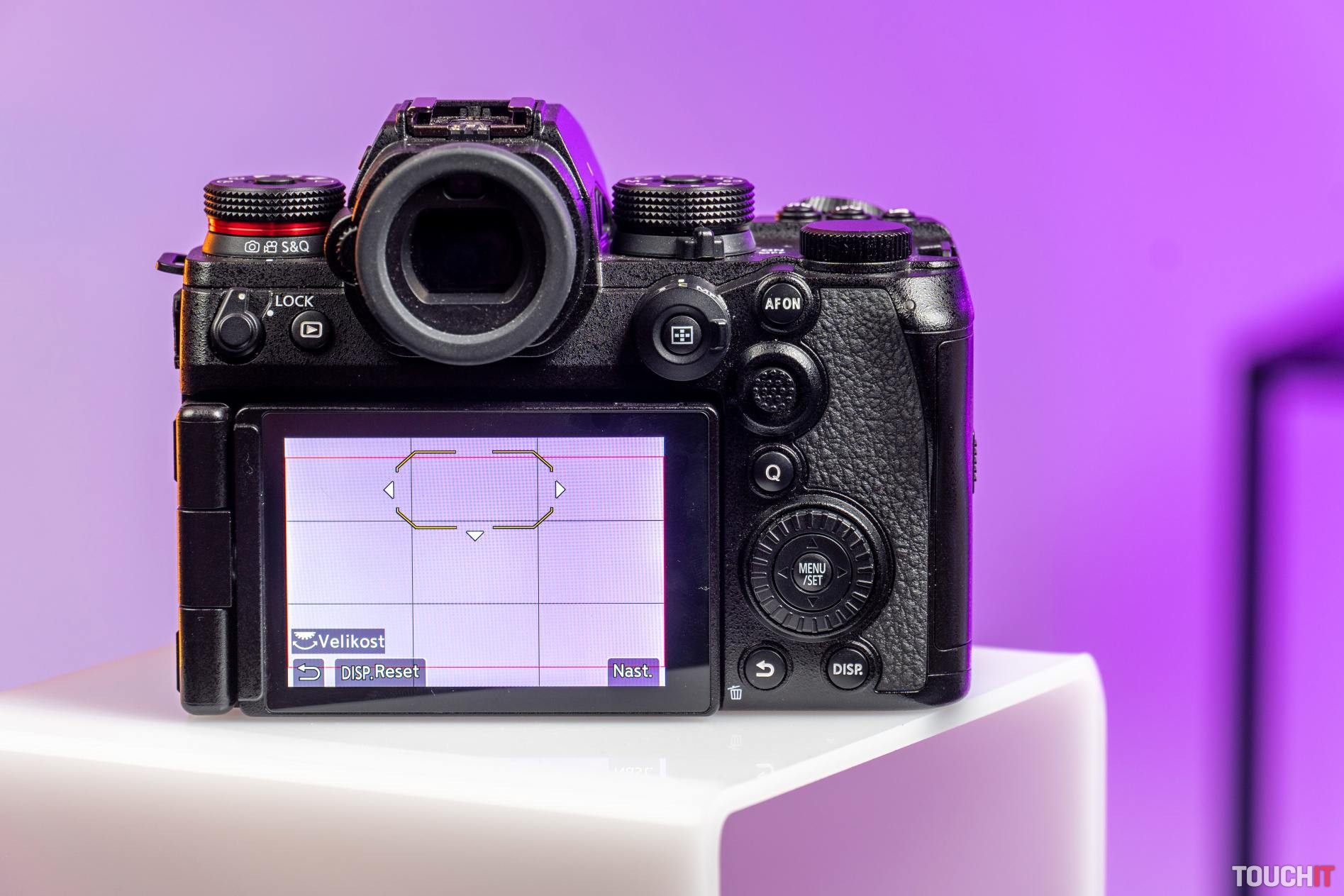 Hľadáčik tohto fotoaparátu je krásne ostrý, ocenili sme tlačidlo na boku fotoaparátu, ktorým sa dá hľadáčik zapnúť/vypnúť.
