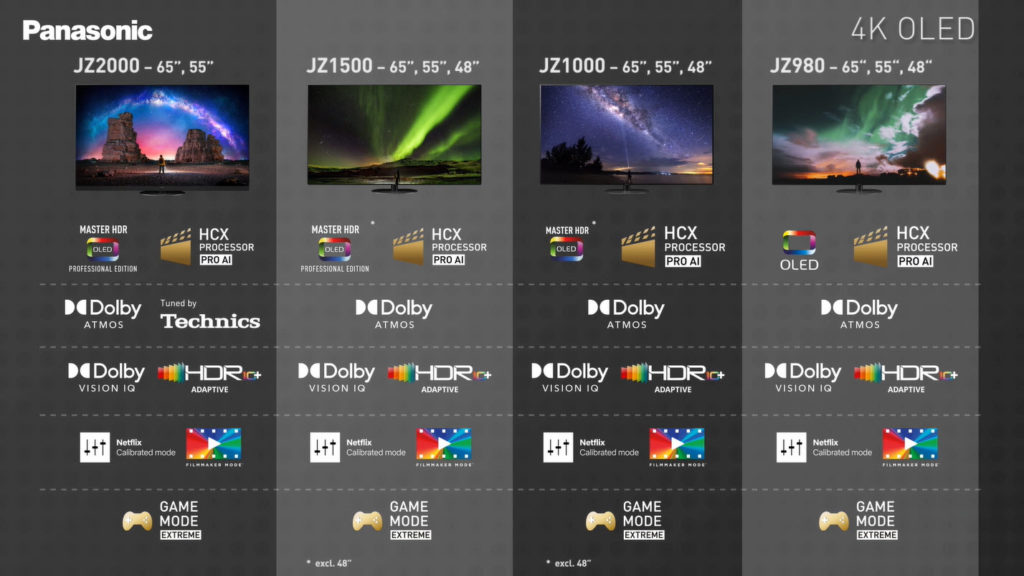 V kategórii OLED televízorov Panasonic doplnil vlajkovú loď JZ2000 o nové modely radu JZ1500, JZ1000 a JZ980, pričom posledné tri sú k dispozícii s obrazovkou s uhlopriečkou 65 a 55 palcov a teraz v ponuke na rok 2021 je dostupná aj 48 palcová uhlopriečka. Nové televízory prešli farebnou kalibráciou od Stefana Sonnenfelda z firmy Company 3 a rešpektovaného spolupracovníka niekoľkých najlepších svetových filmárov. V kombinácii s technickou presnosťou farieb tieto nové OLED televízory predstavujú novú úroveň na sledovanie filmového a prémiového obsahu.