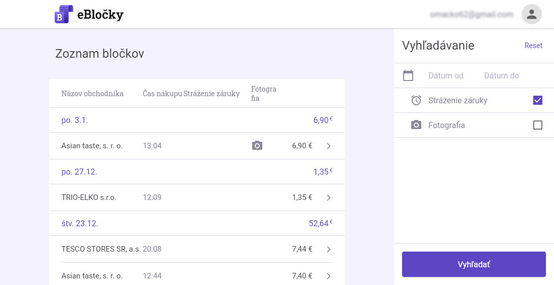 Tak presne na túto situáciu je šitá aplikácia eBločky. Názov hovorí sám za seba – je to evidencia účtov v elektronickej podobe. Uplatnenie záruky ale nie je jediná funkcia tejto aplikácie. Okrem toho vás dokáže držať na uzde, aby ste neminuli viac, ako je zdravé, prípadne je to pre vás evidencia na čo najviac míňate.