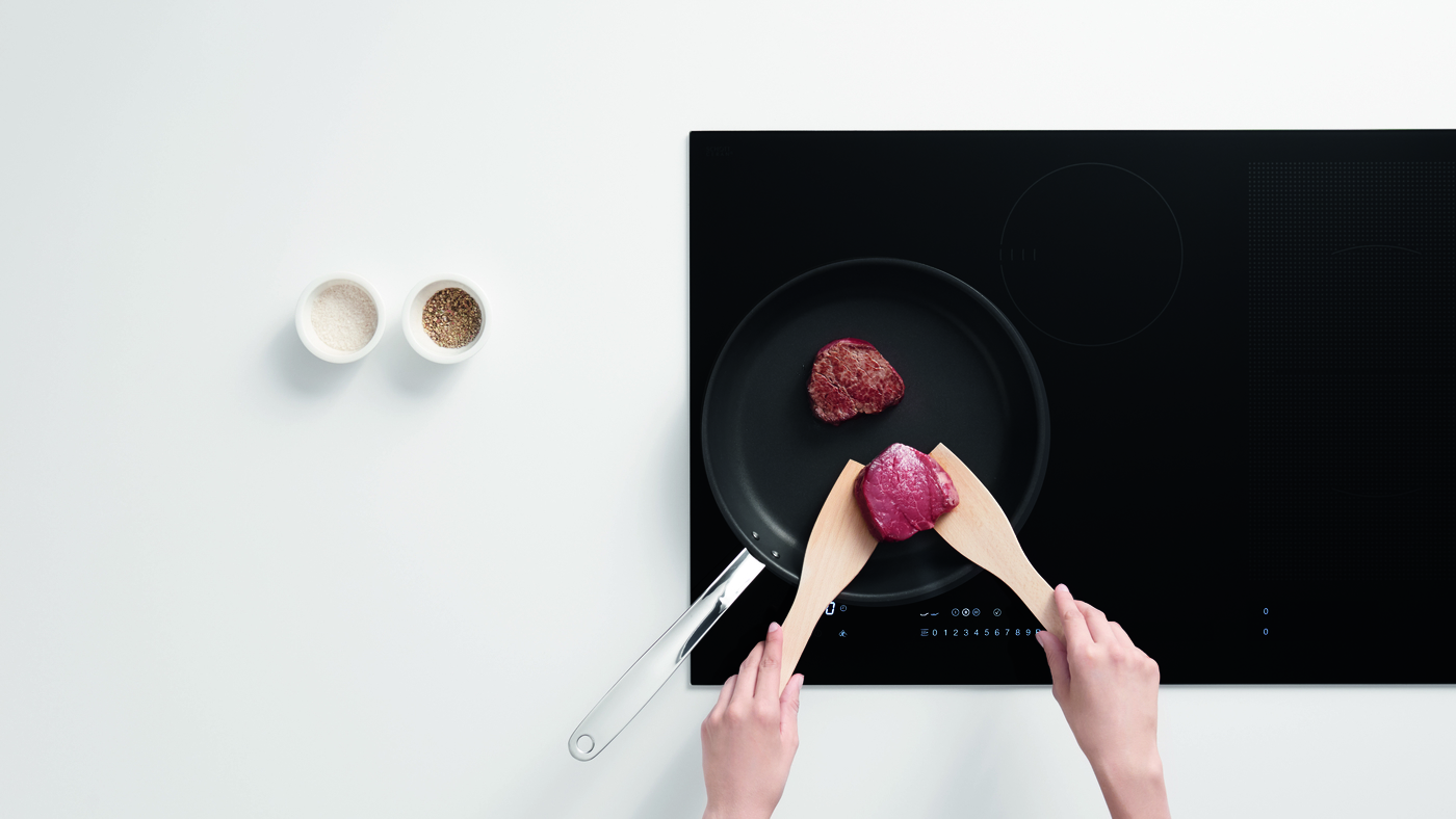 Perfektný steak – krvavý, stredne alebo úplne prepečený – sa nepodarí každému amatérskemu kuchárovi. S CookAssist, inteligentnou aplikáciou pre indukčné varné dosky s TempControl, je táto výzva minulosťou. Pre vybraný steak používateľ zadá do smartfónu požadovaný stupeň prepečenia. Vďaka senzoru telefón i varná doska signalizujú vizuálne aj akusticky, kedy je čas položiť mäso na panvicu: až vtedy, keď má povrch panvice 200 °C. Akonáhle vás aplikácia znovu vyzve, otočte mäso a dokonalý steak je pripravený. CookAssist pomáha pri príprave celého radu ďalších pokrmov.