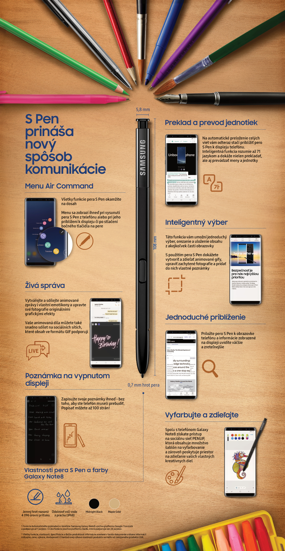 Modernizované pero S Pen, ktoré ponúka zábavnú funkciu Live Message, vylepšené možnosti pre vytváranie poznámok na vypnutom displeji a dokonalejší preklad, umožňuje užívateľom vyjadrovať sa spôsobmi, akými to nedokáže žiadny konvenčný stylus.