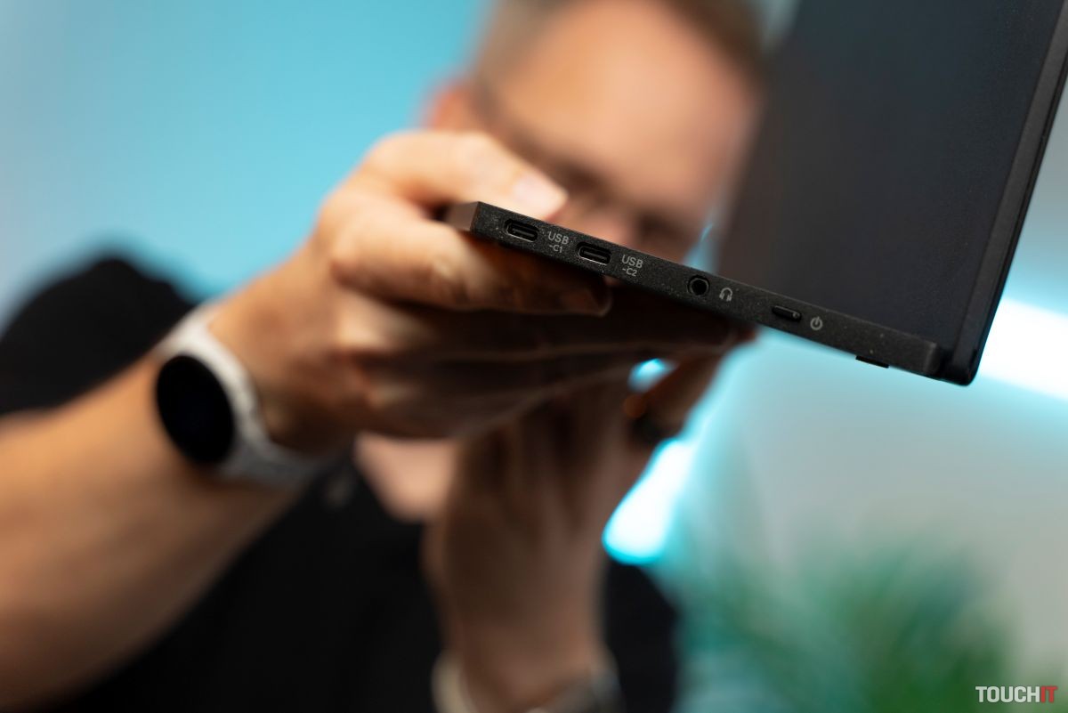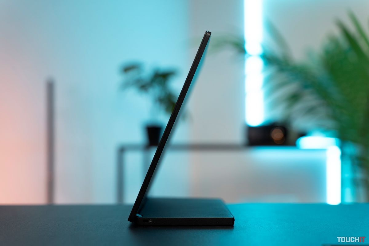 Monitor má rozmery 359 × 232 × 119 mm v rozloženom stave, pričom v zloženom stave je hrúbka na úrovni 10 mm, resp. 20 mm v najhrubšom bode, v ktorom je zložený zabudovaný stojan. Ten ponúka dobrú všestrannosť z hľadiska uhla náklonu. Monitor môžete používať pod uhlom v rozmedzí 90° až 180° (z pohľadu pracovného stola).