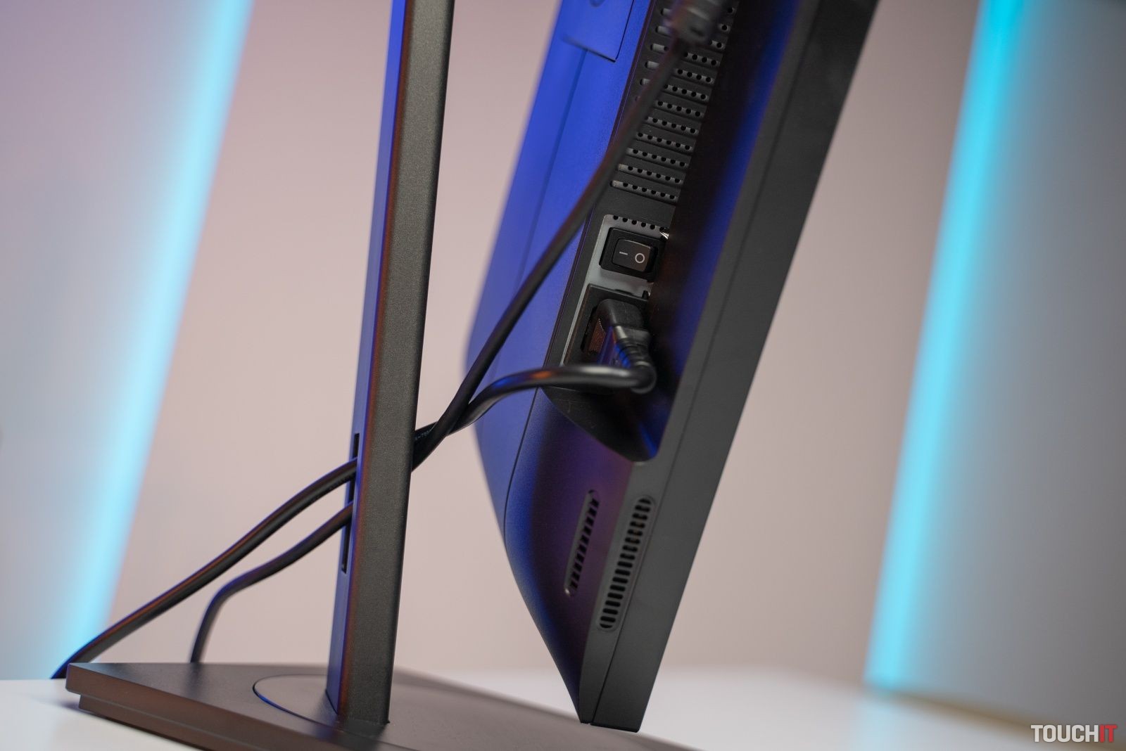 Monitor je možné veľmi jednoducho otáčať doľava a doprava. Stojan je dokonca možné výškovo nastaviť v rozsahu od 2 cm do až 18,5 cm. Hoci nastavenie sklonu smerom od používateľa je dostatočné, tak smerom k používateľovi je veľmi malé. Čo však chválim, tak je používanie pivota. Otáčanie monitora do do vertikálnej polohy je pohodlné aj vďaka nastaveniu výšky. Pokiaľ teda zdvihnete monitor do maximálnej výšky, tak otočenie do vertikálnej polohy je veľmi jednoduché.