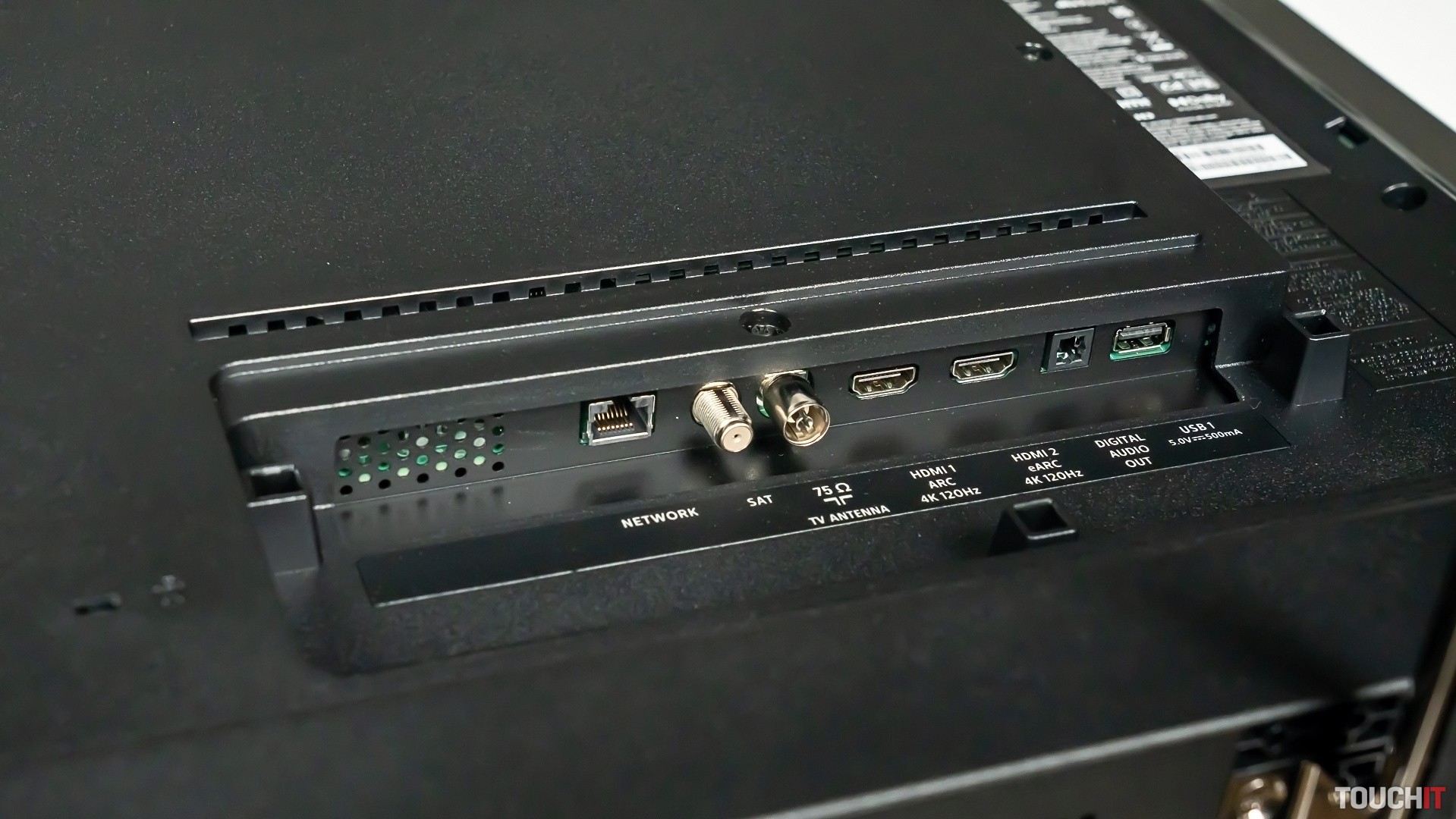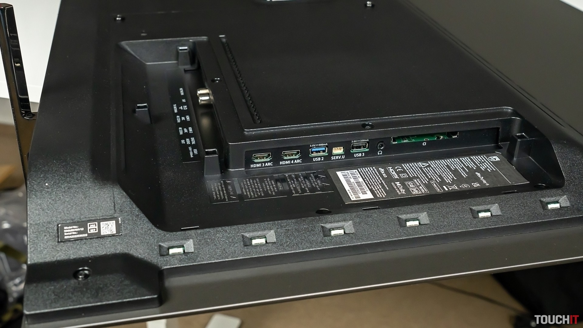 Tenký je predovšetkým v oblasti displeja, v spodnej časti je však hrubší, pričom tu sa nachádza elektronika. Prichádza s metalickým rámom a podľa označenia má uhlopriečku displeja 55 palcov, rozlíšenie je 4K. V spodnej časti sú dve pochrómované nožičky.