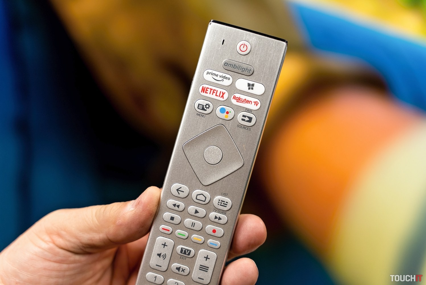 Skutočné ovládanie zaisťuje diaľkový ovládač. Ten je dostatočne veľký, tlačidlá sa stláčajú pohodlne a je striebornej farby. Na jeho tele sa nachádzajú aj tlačidlá na rýchly prístup napr. k Netflixu. Na môj vkus je tu tých tlačidiel trochu veľa, ale dá sa na to zvyknúť.