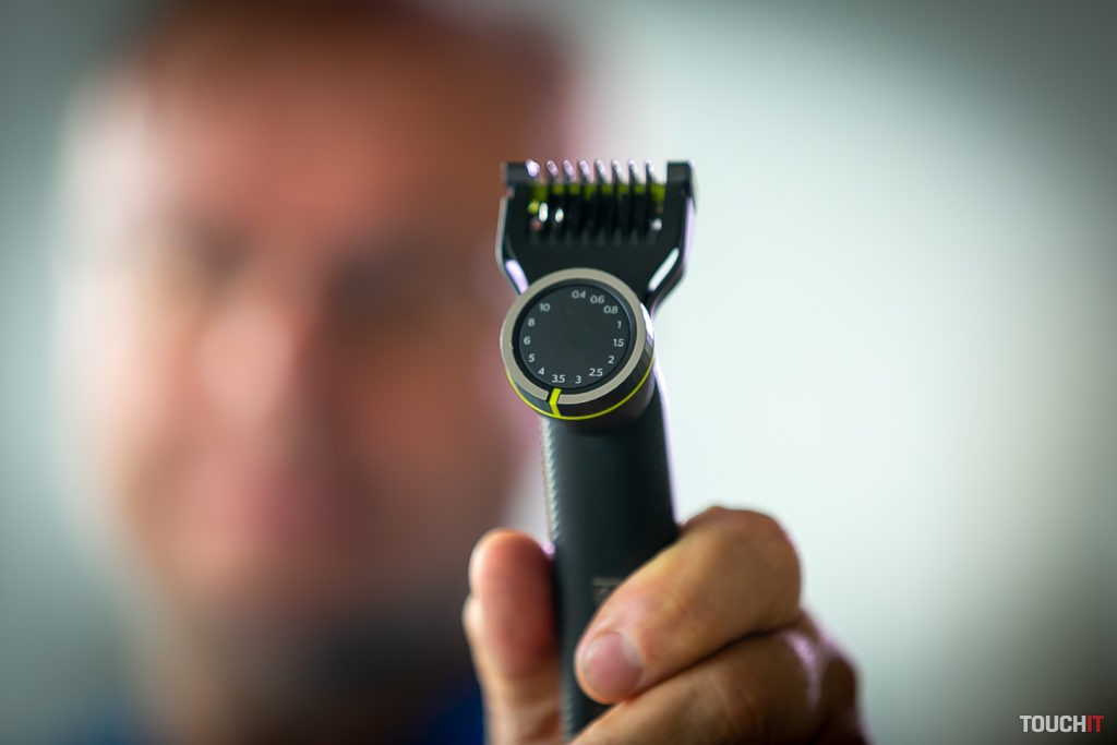 Podstatným doplnením OneBlade Pro (QP6650) je nastaviteľný nástavec – hrebeň, ktorý má rozsah od 0,4 po 10 mm. Máte 14 možností a takto si môžete pomerne presne zvoliť, aká výška fúzov vám má zostať. Nastaviť sa dajú len diskrétne hodnoty. Rukoväť Philips OneBlade Pro je protišmyková.