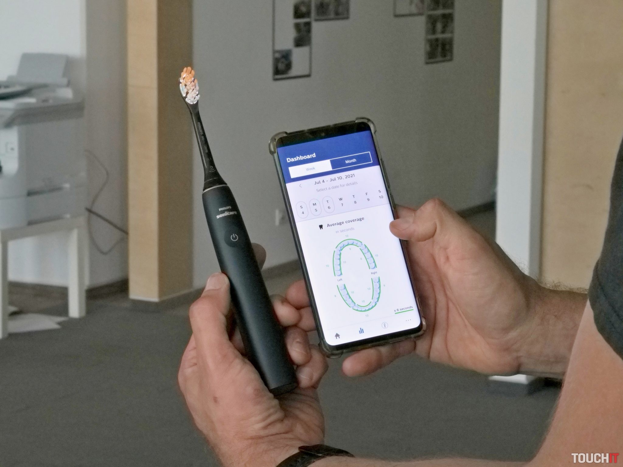 Počas testovania sa nám páčil tutoriál, ktorý vás sprevádza čistením a vďaka vstavaným senzorom v reálnom čase ukazuje na displeji smartfónu, ktorú časť chrupu čistíte, ktorá bude nasledovať a koľko sekúnd si daný segment chrupu máte čistiť. Sonicare zatiaľ ako jediný spomedzi všetkých testovaných zariadení, rozdeľuje chrup na 6 segmentov (ľavé a pravé stoličky, predné zuby a to všetko na spodnom a hornom chrupe).