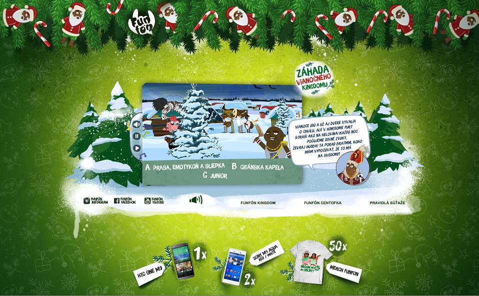 Sociálne siete a online prostredie sú už tradičným miestom, kde zábavný operátor interaktívne komunikuje so svojimi zákazníkmi a fanúšikmi. Naposledy si mohli napríklad vyskladať pomocou lajkov, komentárov a zdieľaní príspevku na Facebooku narodeninový darček. Následne si ho mohli ako Centofku aktivovať všetci zákazníci FunFónu s profilom FunFón Férofka v podobe volaní, SMS a MMS za bezkonkurenčný 1 cent. A s prekvapeniami operátor pokračuje aj na Vianoce. „Aj počas Vianoc chceme našim zákazníkom a fanúšikom prinášať pravidelné dávky zábavy tam, kde je to pre nich prirodzené. Pripravili sme pre nich jedinečnú online hru, v ktorej musia pátrať po Záhade vianočného Kingdomu, vyriešiť Pištove úlohy a vyhrávať skvelé ceny,“ prezrádza brand manažérka FunFónu Ivana Nichtová. Sú skutočne Vianoce v Kingdome ohrozené? Prečo tam miznú vianočné ozdoby, kto ukradol stromček, či odkiaľ vychádzajú zvláštne zvuky? Po tom všetkom môžu pátrať zákazníci i fanúšikovia FunFónu. Jednoduchá online hra na webe www.ohrozenevianoce.sk pozostáva zo siedmich záhadných situácií, ktorých riešenie nájdu hráči v podobe indícií na svojej facebookovej stránke, webovej stránke FunFónu a najnovšie – aj na Instagrame s profilom @funfonsk, ktorý FunFón ako nový komunikačný prostriedok predstavil len minulý týždeň. Hráči sa po prekonaní jednotlivých levelov môžu tešiť na štandardne zábavné výhry i seriózne mobilné telefóny. Hra prebieha do 15.1.2016 a víťazi hlavných cien budú vyžrebovaní 18.1.2016.