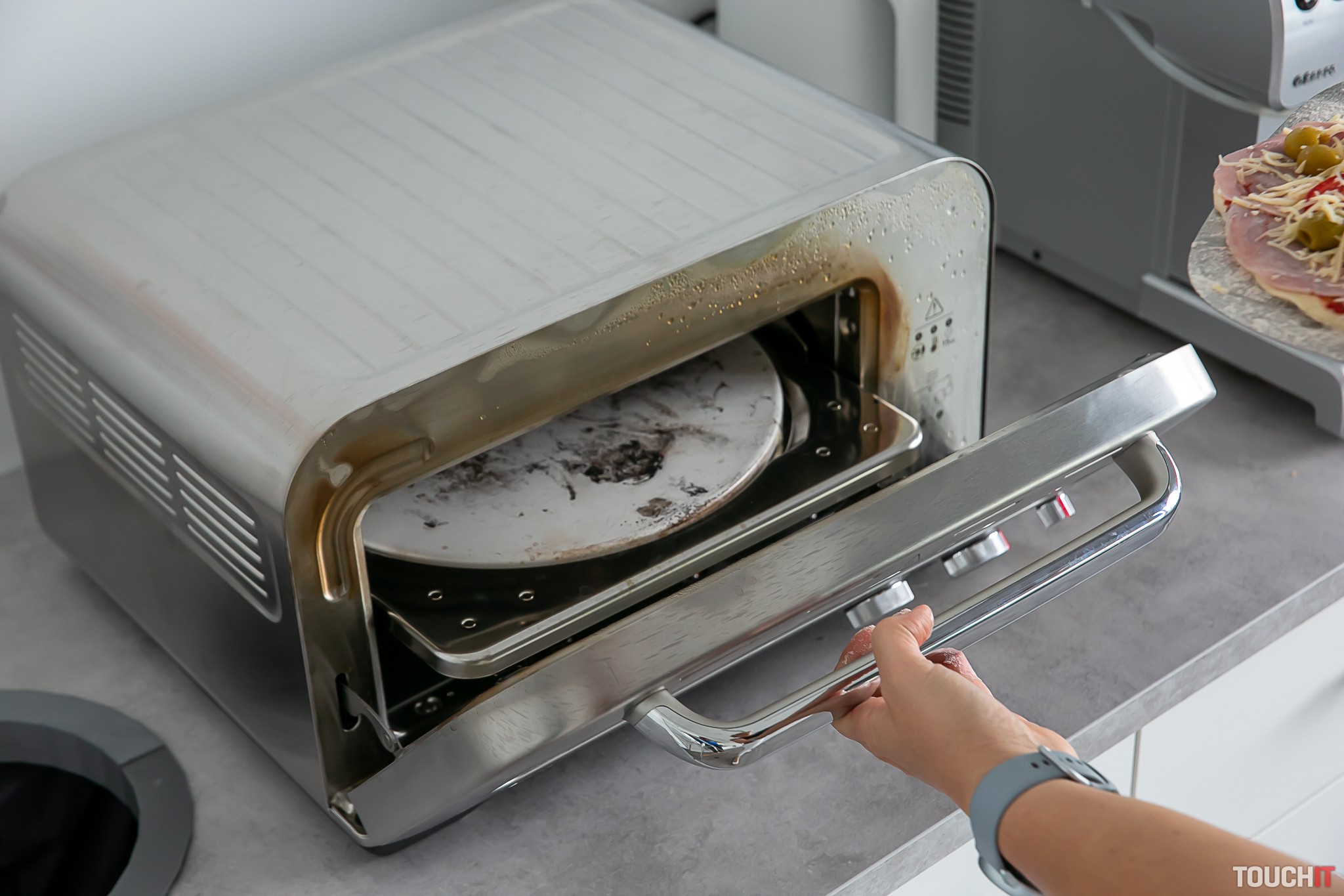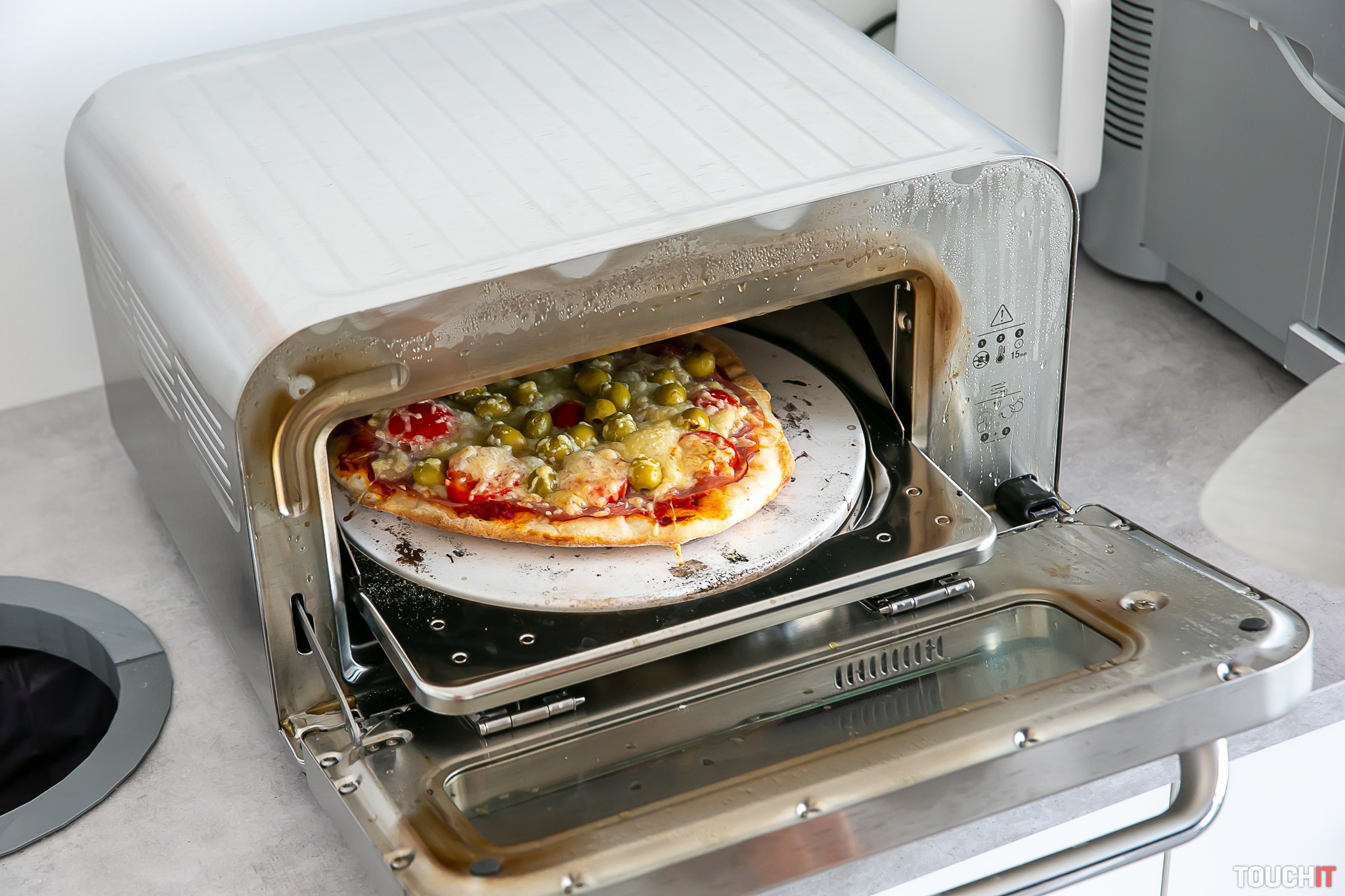 Pec má dvojitú izoláciu a napriek tomu, že vo vnútri môže byť až 400°C, nepopálite sa pri náhodnom dotyku rukou ani počas pečenia. Je tu dvojitá izolácia, ale pec je aj zvonka zahriata. Tiež cítiť, že niečo pečiete a pri našej príprave sa do kuchynky zbehlo celé naše poschodie. Pizzu môžete počas pečenia sledovať cez presklenené okienko. Do tejto pece môžete pritom umiestniť pizzu do priemeru 300 mm a má príkon 2100 W. Po skončení pečenia počítajte tak s 20 až 60 minútami na jej chladnutie pri otvorených dvierkach podľa tohto, akú teplotu ste ju zahriali. Po skončení pečenia by ste mali vyčistiť kamennú podložku na pečenie, prípadne aj panvicu s vysokými bokmi.