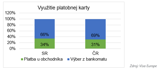 Podľa Marcela Gajdoša, regionálneho manažéra Visa Europe pre SR a ČR, je síce apetít Slovákov po platobných inováciách obrovský, avšak zo štatistických údajov je jasné, že sila hotovosti je stále veľká. Je to evidentné aj pri porovnaní výberov hotovosti z bankomatov a platby kartou u obchodníka. Na Slovensku výbery z bankomatov predstavujú 66% a platby terminálom u obchodníka sú vo výške 34%. A v Čechách je to veľmi podobné – 31% platby kartou u obchodníka a 69% sú výbery z bankomatov.