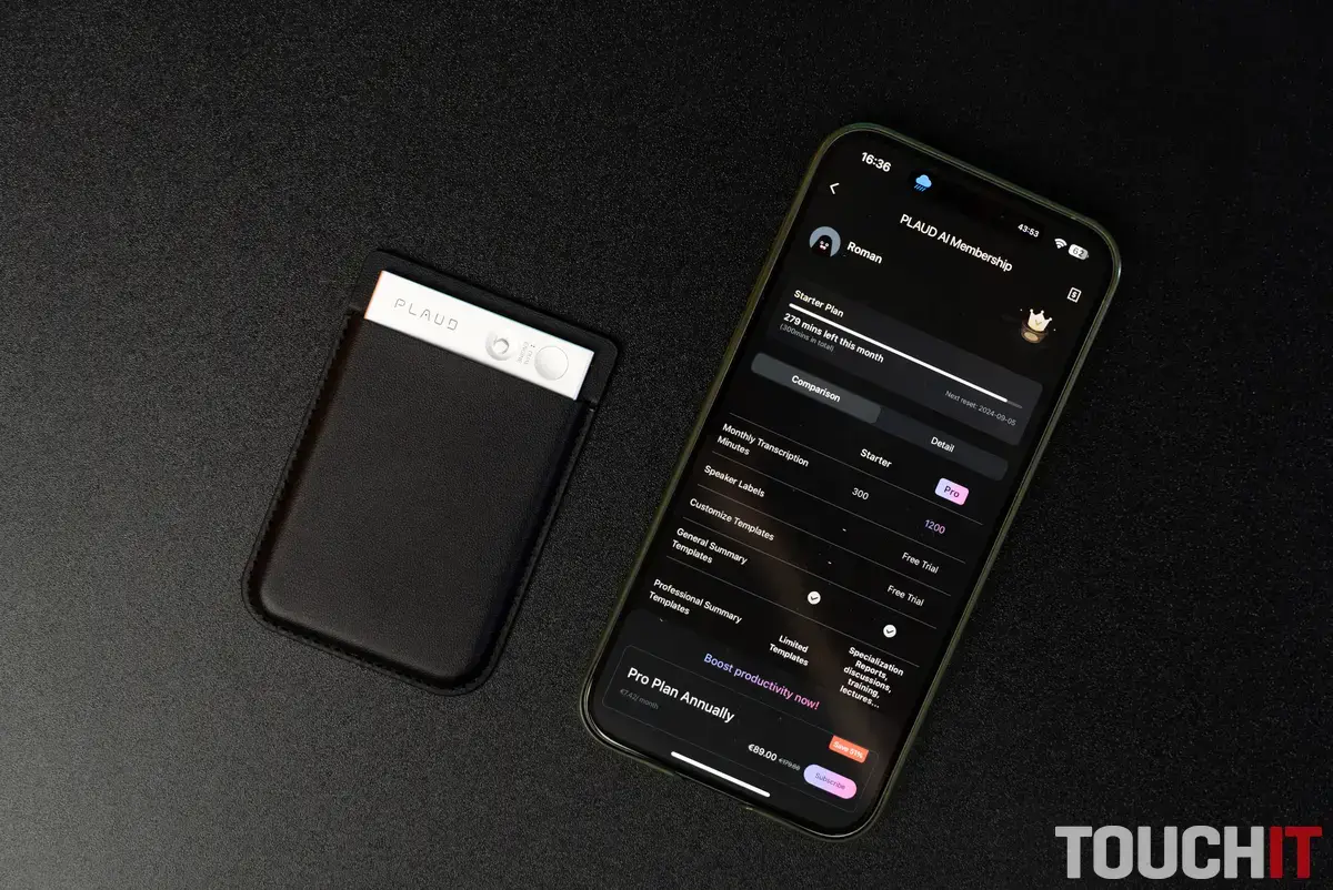 Platené členstvo Pro stojí 14,99 eura mesačne alebo 89 eur ročne, ponúka 1200 minút mesačne a zopár funkcií navyše, ako je viac šablón, z ktorých si môžete vyberať pri sumarizácii a prepise nahrávky. Používatelia s predplatným môžu využiť aplikáciu PLAUD aj na prepísanie nahrávok, ktoré nenahral priamo PLAUD NOTE.