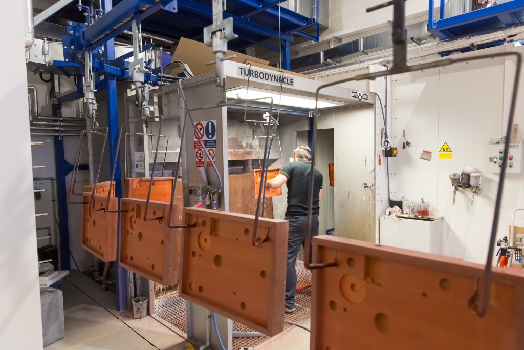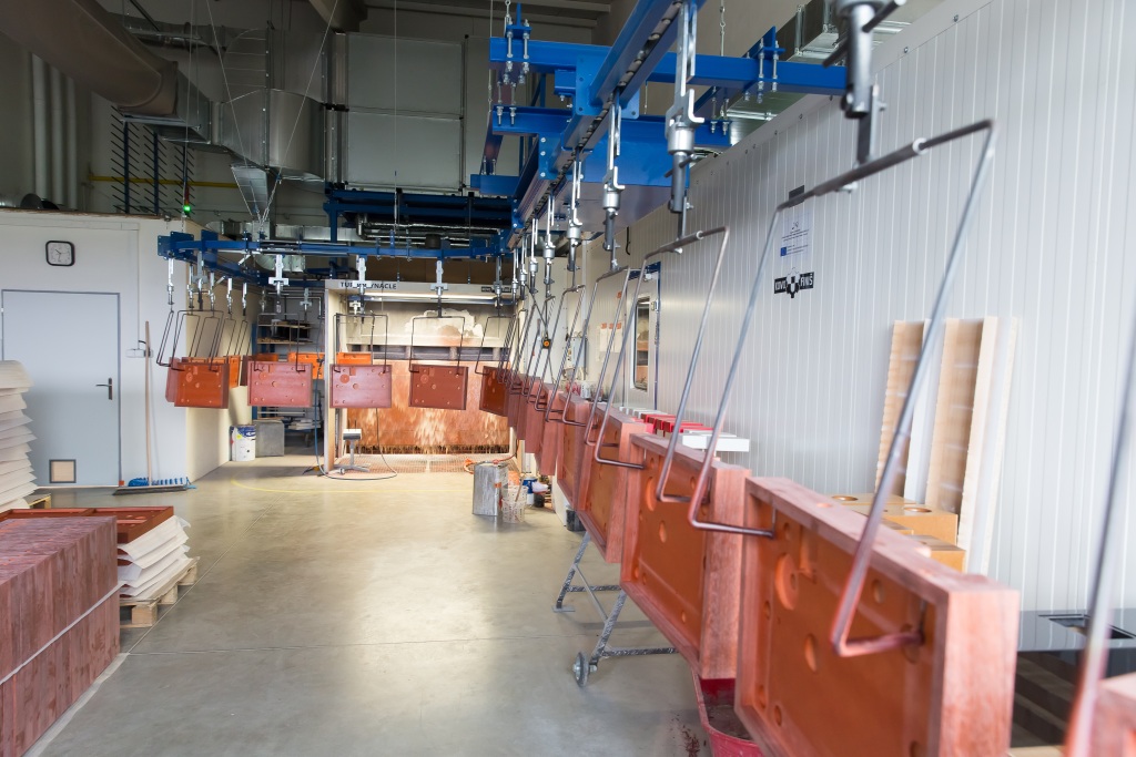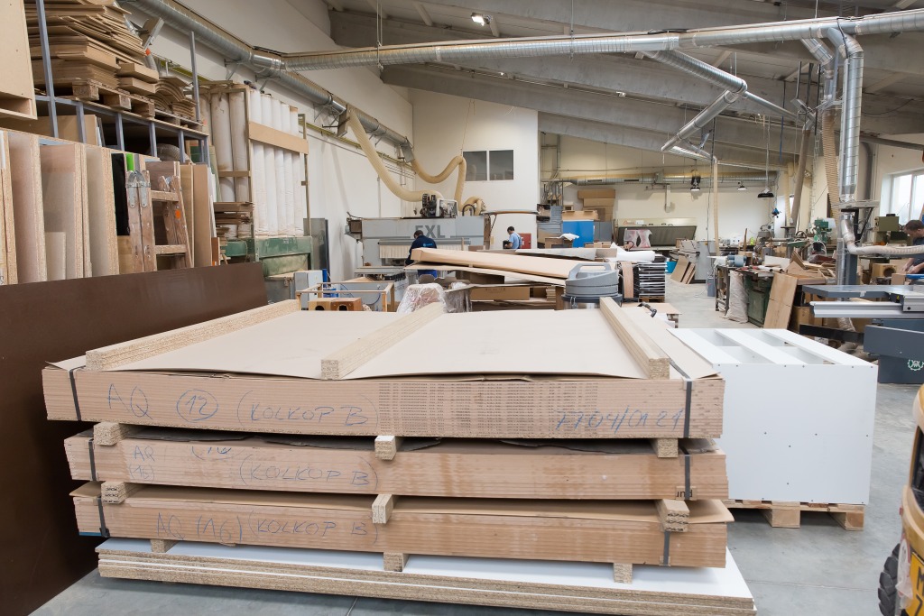 A tu je lakovňa s vodnou stenou, kde sa lakujú drevené produkty