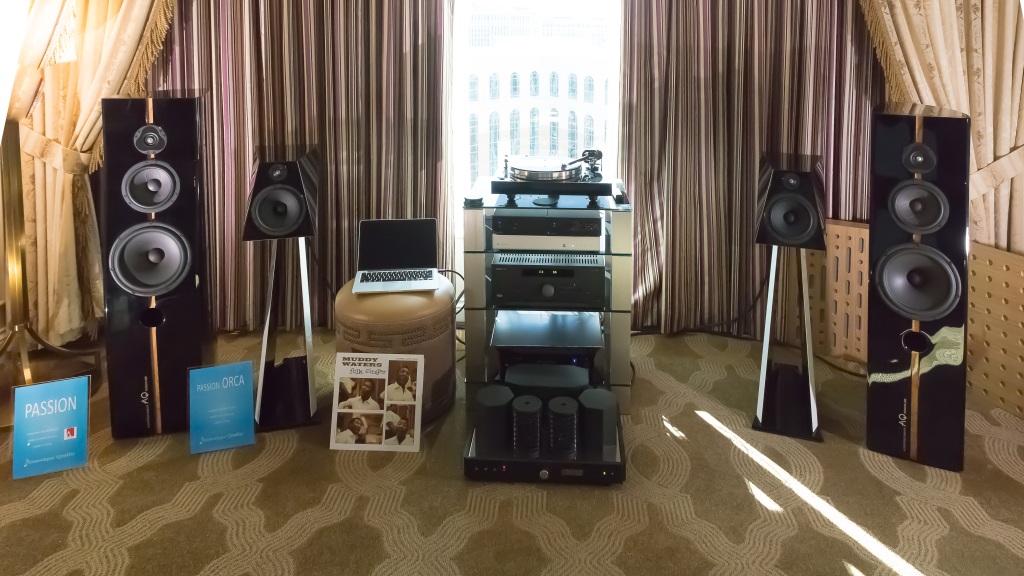 Pozrel som si, z akých krajín pochádzajú vystavovatelia. Dvoch slovenských sme už navštívili, tak som si pozrel vystavovateľov z ČR. A tu mi padol zrak na Aqustique Quality. O tejto firme som už počul, hlavne od mojich českých kolegov a všetci ju chválili. Tak som zašiel na horné poschodie hotela Venetian a v jednom apartmáne tu AQ ukazovalo svoje najnovšie reproduktory. Boli to ich vlajkové lode – Passion a Orca. A mali aj kopu dobrých platní a radi ukázali, čo to vlastne do Ameriky doviezli. Z polhodiny bolo 50 minút a ja som odchádzal s pocitom, že na túto firmu sa ešte musím pozrieť.