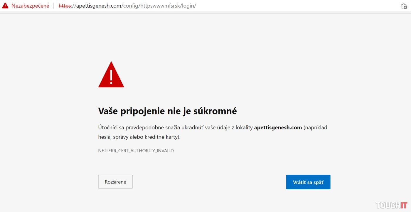 My sme na podvodný odkaz skúsili zo zvedavosti kliknúť. Na pokus o podvod nás však našťastie upozornil aj internetový prehliadač, ktorý môže byť v niektorých prípadoch záchranou, ak v nepozornosti kliknete na odkaz v podvodnej správe. A pokiaľ máte pochybnosti o pravosti emailu, vždy môžete priamo kontaktovať inštitúciu, ktorá vám vraj správu odoslala a overiť si, či to tak bolo.