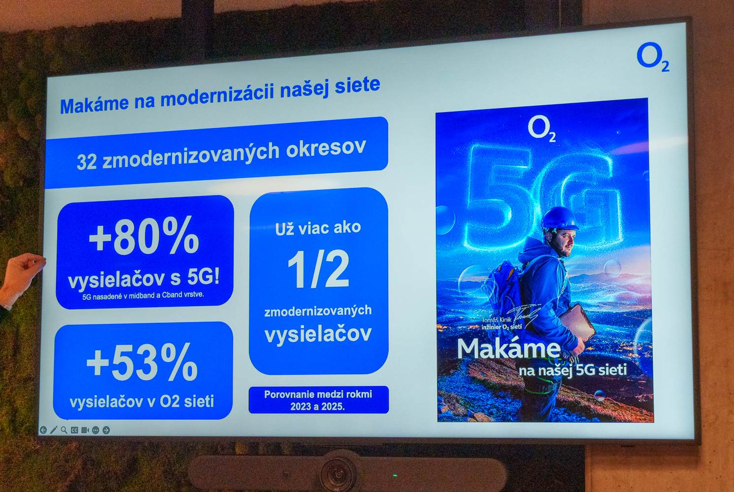 Porovnanie medzi rokmi 2023 a 2025 potom ukazuje, čo všetko sa v rámci siete O2 zmenilo. Veľký dôraz je práve na budovaní siete 5G. Počet vysielačov v sieti O2 sa viac ako zdvojnásobil. Z celkového počtu plánovanej modernizácie vysielačov, už modernizáciou prešlo viac ako 53 %.