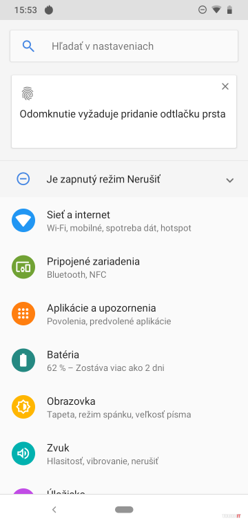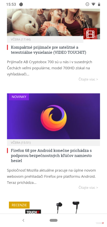 Zaujímavosťou tu sú najmä dve veci, konkrétne tlačidlá. To na vypnutie je podobné ako zo symbianových Nokií a „dýcha“. Keď dostanete notifikáciu, bude pulzovať. To je pekný efekt a zároveň návrat ku koreňom značky. LED upozornenie by ale mohlo byť rýchlejšie. Email z Gmailu sa v smartfóne ozval notifikáciou až 3 minúty po jeho prijatí do schránky. Na opačnej strane je druhé tlačidlo, pre digitálneho asistenta. V slovenčine ním zapnete obrazovku s prehľadom správ, dlhé podržanie nezapne hlasové počúvanie ale opäť obrazovku so správami a informáciami z asistenta. Výrobca sa ešte rozhodol použiť microUSB konektor a s ním aj pomalé 5 W nabíjanie. Nechýba ani audio konektor na hornej strane. Kvalita spracovania je prvotriedna. Samsung Galaxy A40 je naozaj šikovný telefón do ruky. Vďaka skutočne minimálnym okrajom má veľký 5,9“ displej a nie je to žiadny obor. Podobne ako ostatné modely v našom teste je na trhu nejaký čas a aspoň to čo, máme možnosť vidieť z nášho okolia, je pre mnohých jedným z primárnych tipov. Displej používa výraz typu Infinity-U a má Super AMOLED displej. Výrobca ale nepridal funkciu Always-On. Dizajnovo vychádza z ostatných smartfónov tohtoročnej série A. Dobre sa drží v ruke a zadná strana sa priveľmi nešmýka. Nemá typické ochranné sklo ale upravený povrch zo skla, ktorý výrobca pomenoval 3D Glasstic. Je menej klzký a zároveň dostatočne odolný proti škrabancom. Rozdiel poznáte hneď pri prvom chytení do ruky. Je tu dostatok operačnej pamäte a hodnota 4 GB je dnes štandardnom v strednej triede. Pri kapacite batérie 3100 mAh vydrží celý deň ale to je tak akurát, ak chcete vyššiu výdrž, bude mu treba aktivovať šetriaci režim. Nás potešilo rýchle nabíjanie, hoci nie je tak výkonné ako pri modeli F1 od Umidigi. Snímač odtlačkov je na zadnej strane a je oválny. Zdal sa nám trochu úzky a museli sme sa naučiť sa doň trafiť. Umidigi F1 je najväčší smartfón v teste so 6,3“ displejom. Je to na dotyk príjemný telefón a veľmi sme si obľúbili zadný kryt. Je plastový a jemne pogumovaný, čo z neho robí skutočne praktický telefón. Položíte si ho na nohavice a nezošmykne sa dole. A to máte v balení ešte čierny gumový kryt. Výrobca takisto použil výrez uprostred a okraje displeja od okrajov hrán sú minimálne. USB-C aj audio konektor sú na spodnej hrane. Aj v tomto prípade je čítačka odtlačkov oválna. Tým, že je smartfón dlhší, nahmatala sa nám ľahšie ako u ostatných dvoch telefónov. Dvojica vystúpených objektívov má milimetrové lemovanie. Nijako neprekáža, pozor na prsty, keď budete fotiť. To ale platí pre všetky smartfóny s vertikálnymi objektívmi na kraji zadnej strany. Za zmienku stojí aj extra veľká batéria a to s kapacitou 5150 mAh. Toto vám dáva záruku výdrže na skutočné dva dni bežného používania bez potreby výraznejšie šetriť. A pritom to nijako výrazne nevidno a na prvý pohľad neodhalíte, že má v tele tak veľkú batériu. Existuje aj model Umidigi F1 Play Edition, ktorý má malý rozdiel vo fotoaparáte a kapacite RAM a je určený skôr pre hráčov.Operačný systém
