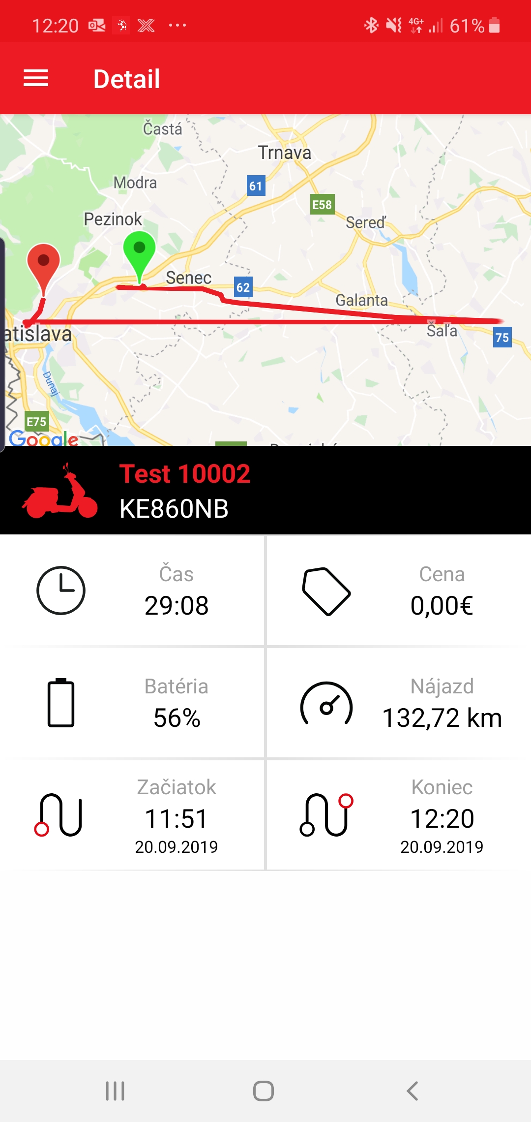 Skúter je možné vrátiť po skončení jazdy do nabíjacej stanice označenej logom Antik v rámci mesta a takéto vrátenie je bezplatné.
