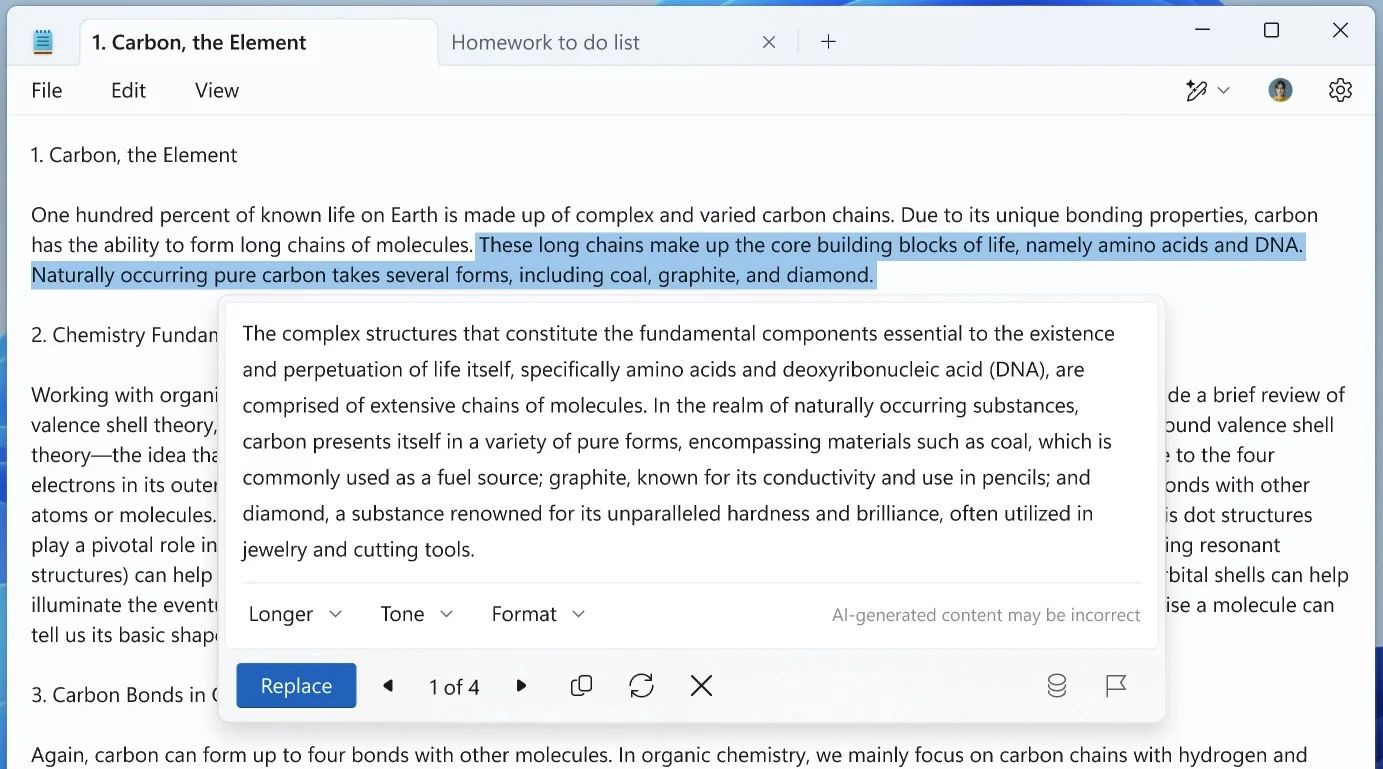 Zapojenie AI do Poznámkového bloku umožní automatický prepis konkrétneho obsahu. Vďaka tomu sa budú môcť preformulovať vety, upraviť štýl alebo dĺžka obsahu. Zatiaľ však ide o funkciu, ktorá je dostupná len v USA, Francúzsku, Veľkej Británii, Kanade, Taliansku a Nemecku. Na použitie inteligentných funkcií bude potrebné použiť konto Microsoft.