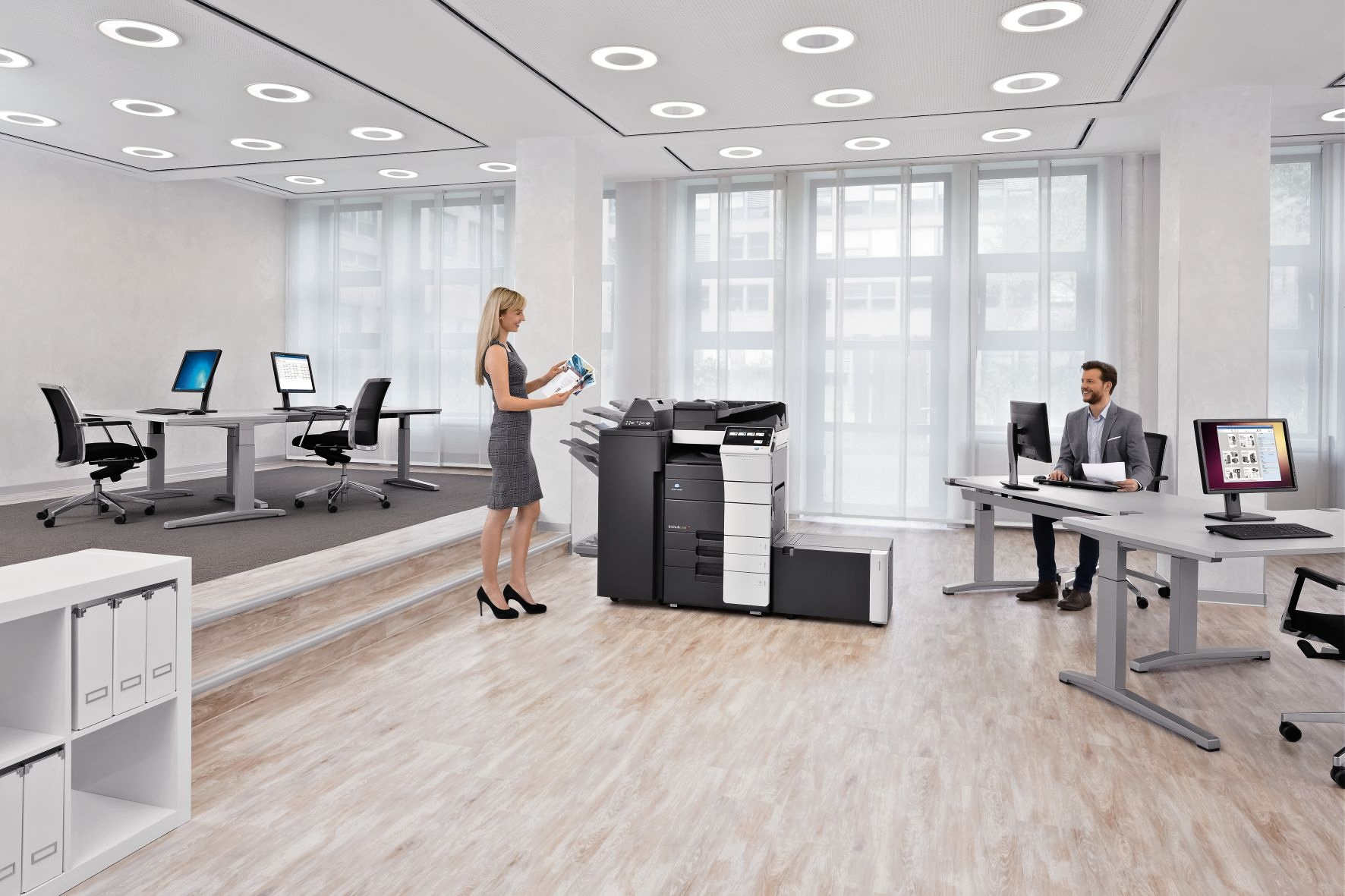 Zariadenia majú svoje pevné disky, ktoré umožňujú digitalizované materiály uchovávať priamo na nich. Takisto slúžia na to, aby sa tlačové úlohy zaradili na tlač až po prihlásení zamestnanca na danom zariadení. Na to už slúžia tlačové servery, ktoré pošlú dokument na konkrétne zariadenie. Výhoda? Nezabudnete, že ste si dali vytlačiť faktúru a mohli by ju medzičasom vidieť ostatní.