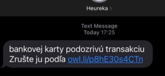Viacero používateľov nákupného poradcu Heureka.sk dostalo podvodné SMS s informáciou o podozrivej bankovej transakcii. Ide o phishingový útok, ktorého cieľom je dostať sa k citlivým údajom na platobných kartách. Heureka takéto správy nikdy neposiela.