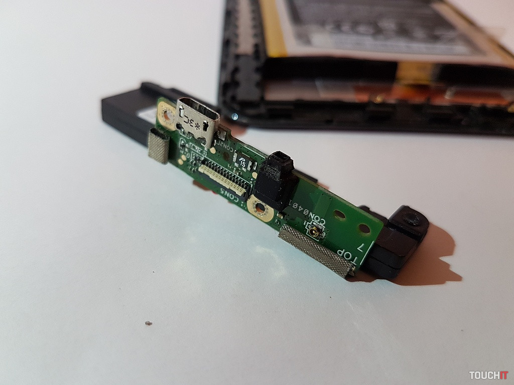 Po základnej doske nasleduje spodná, sekundárna doska, ktorá obsahuje nabíjací a dátový microUSB konektor, druhý reproduktor, mikrofón a kontakt GSM antény.