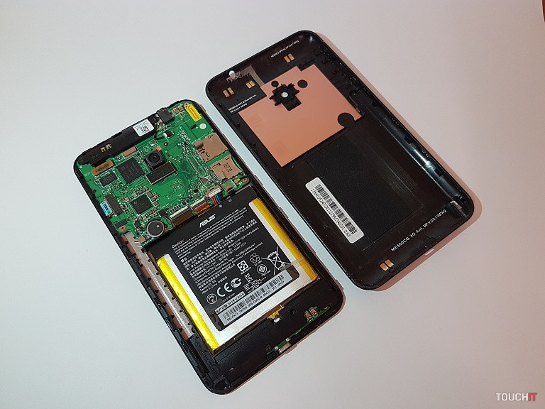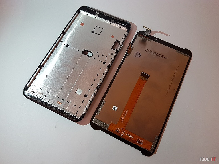 Do vnútra zariadenia sa dostaneme oddelením zadného plastového krytu od stredového rámu s displejom a komponentami. Podotýkame, že telefón je pre používateľov uvádzaný, ako „nerozoberateľný“.
