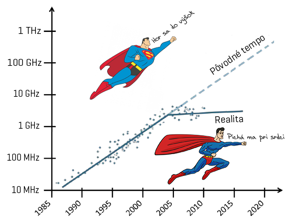 Ak vývoj hardvéru počítačov sledujete už dlhší čas, určite si pamätáte dobu rýchleho rastu frekvencie procesorov. Ako štart si môžeme zvoliť napríklad originálny koncept IBM PC z roku 1981, ktorý obsahoval procesor Intel 8088 s frekvenciou 4,7 MHz. Ako to vyzeralo o desať rokov? Nuž veru 10× lepšie, pretože v roku 1991 už procesory ako Intel 80486 pracovali na frekvencii 50 MHz.