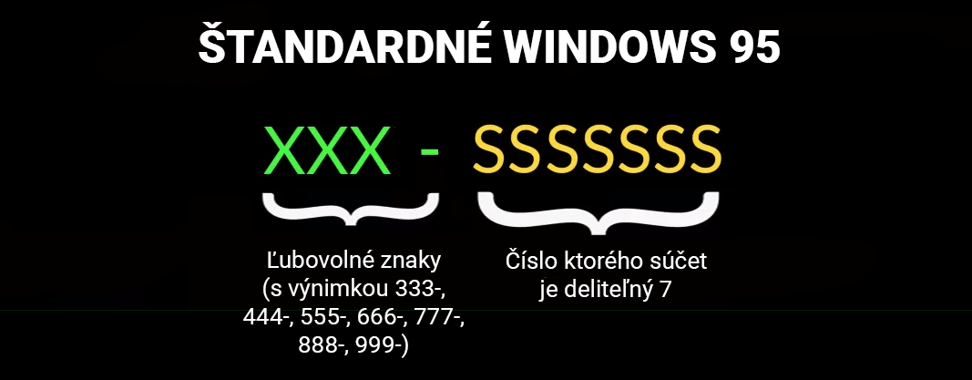 Prečo je BILL1111111 platné registračné číslo Windows 95?