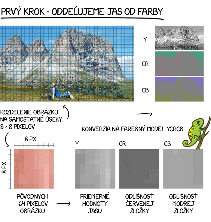 Toto je skrátka obrázok a v základe nič viac. Aby JPEG dosiahol jeho objemové zmenšenie, začne trošku podvádzať. V základe všetko robí v štyroch krokoch.