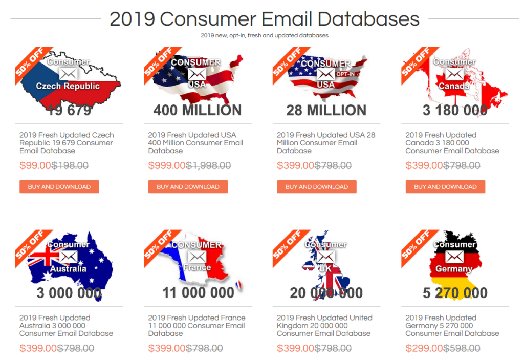 Výsledkom je, že vznikajú databázy s miliónmi e-mailových adries, ktoré sa následne predávajú rôznym záujemcom za neveľký poplatok.
