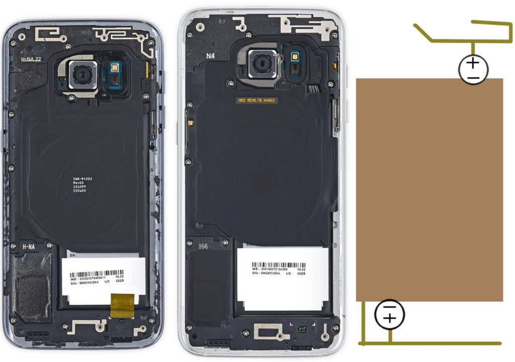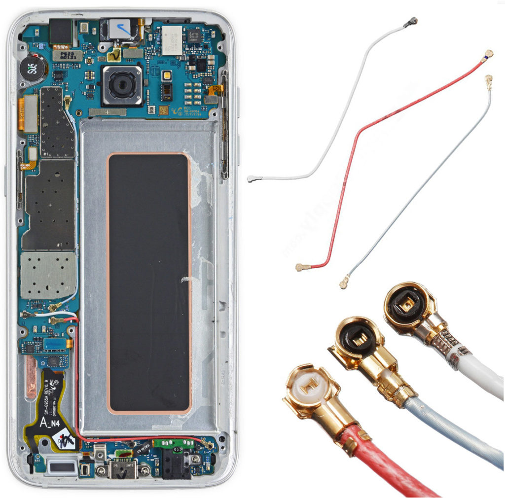 Od antén smartfónov následne vedie koaxiálna kabeláž, čo sú obvykle dobre viditeľné drôtiky s kruhovým prierezom, ktoré môžete pekne vidieť napríklad na tomto obrázku útrob Samsung Galaxy S7 edge.