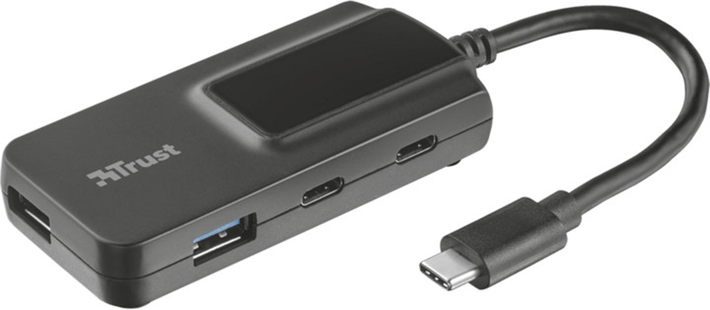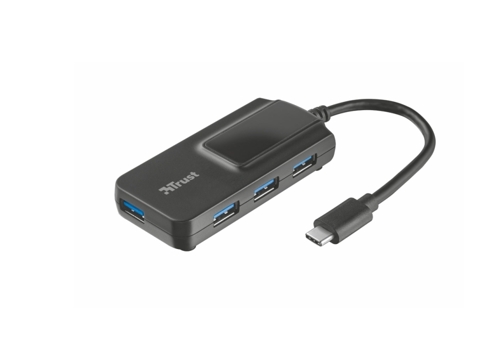 Trust Oila USB-C to 4 port USB 3.1 Gen. 1 Hub je takisto hub so štvoricu štandardných USB portov, avšak v tomto prípade máte k dispozícii vysoké prenosové rýchlosti na teoretickej úrovni až 4,8 Gbps pre každý port. Nakoľko USB-C umožňuje prenos dvojnásobnou rýchlosťou, môžete teoreticky kopírovať z dvoch alebo viacerých USB 3.0 úložísk plnými rýchlosťami súbežne.