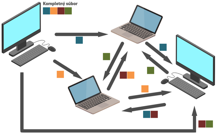 Poskytnutie takýchto dát si vyžaduje vskutku masívnu konektivitu a ak ju nemáte, požiadavky vás rýchlo zahltia a nikto si nestiahne nič. Čo ak by ale dáta neputovali každému žiadateľovi zvlášť? Čo ak by už počas sťahovania jednotliví používatelia každý stiahnutý bajt začali podávať iným ľudom ako virtuálnu štafetu? Namiesto jedného zdroja by tak dáta putovali ľudom z čoraz viac zdrojov a tvorila by sa tak zdanlivo nekončená sieť, pri ktorej by si ľudia záťaž rozdelili.
