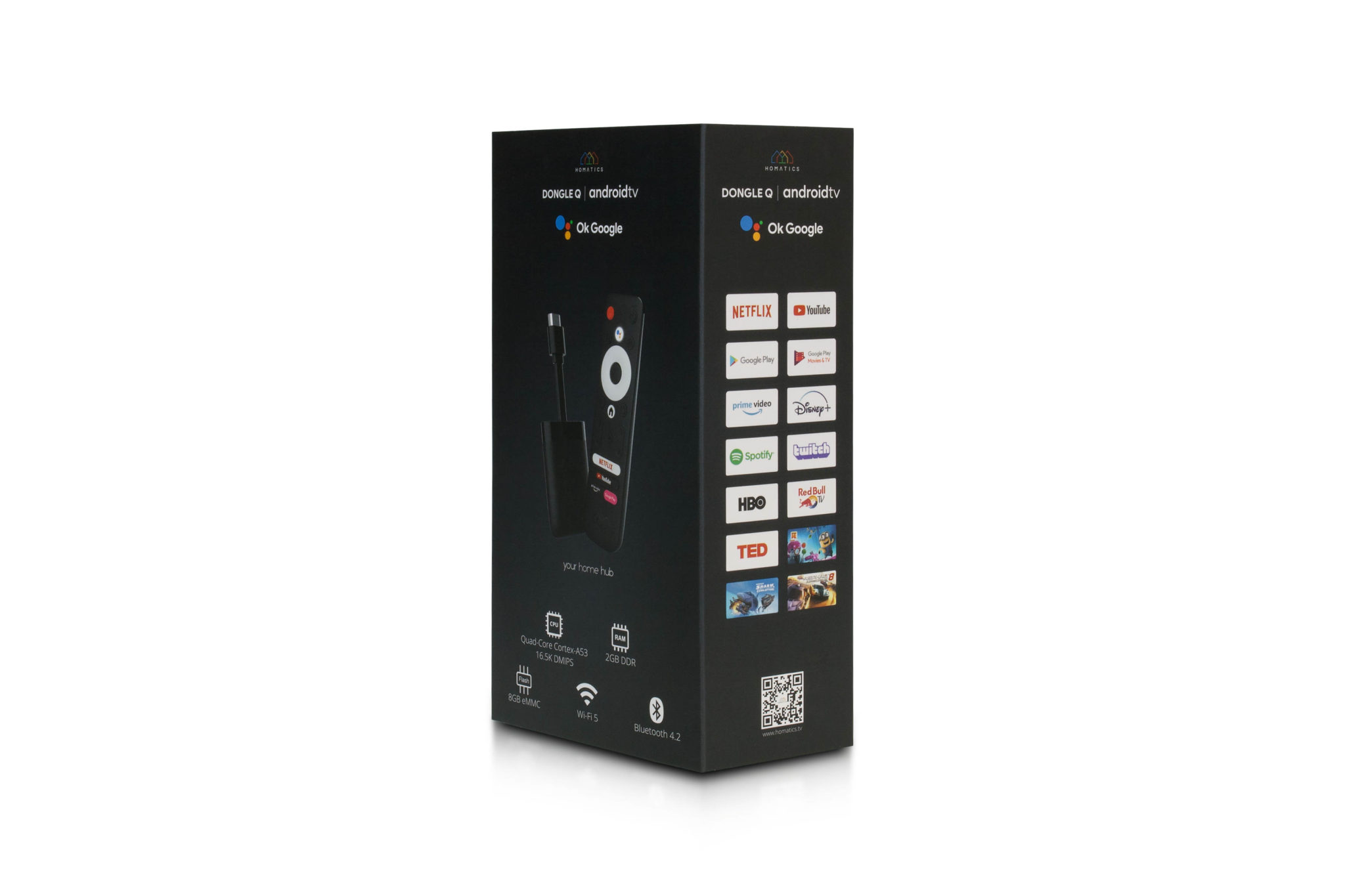 Z hardvérového hľadiska ide o výkonné zariadenie s podporou 4K UHD/60 fps. Základom je 4-jadrový procesor Amlogic S905X3, 2 GB RAM a 8 GB eMMC. Operačný systém je Android 10, zvuk podporuje Dolby Audio. Z bezdrôtových napojení je tu Wi-Fi 5 (vrátane 5 GHz siete) a Bluetooh 4.2. Cena: 79,90 €